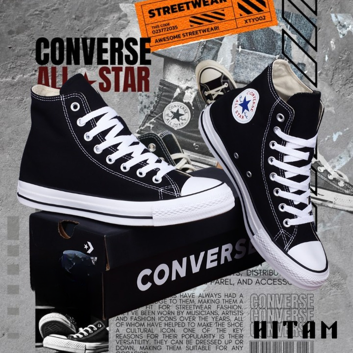 TERBARU Sepatu Sekolah SD SMP SMA Allstar Hitam Garis Putih UKURAN 36-43 Converse High Pria Wanita Canvas 70s Original M