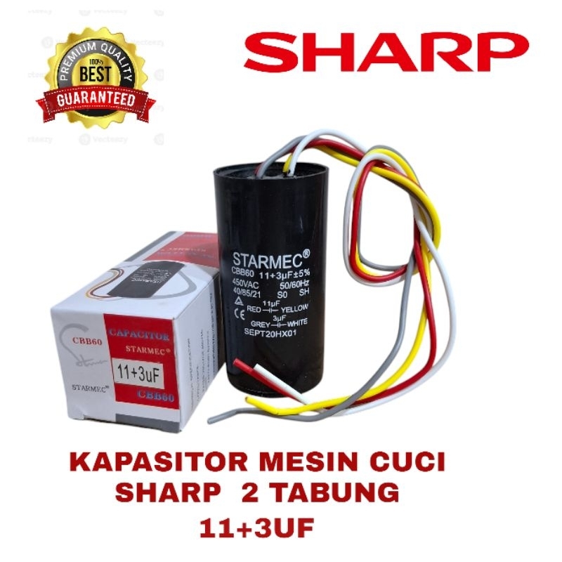 PROMO TERBATAS KAPASITOR MESIN CUCI SHARP 2 TABUNG 11+3UF HIGH QUALITY PART