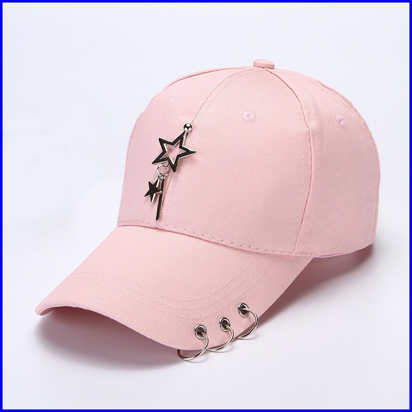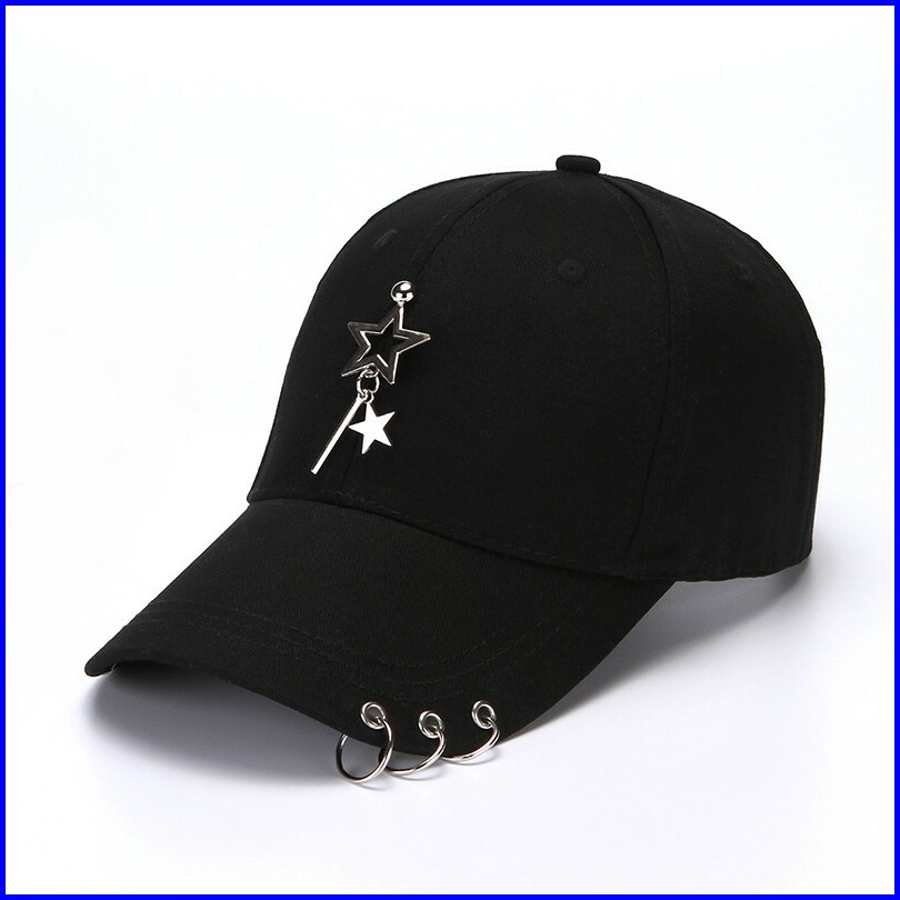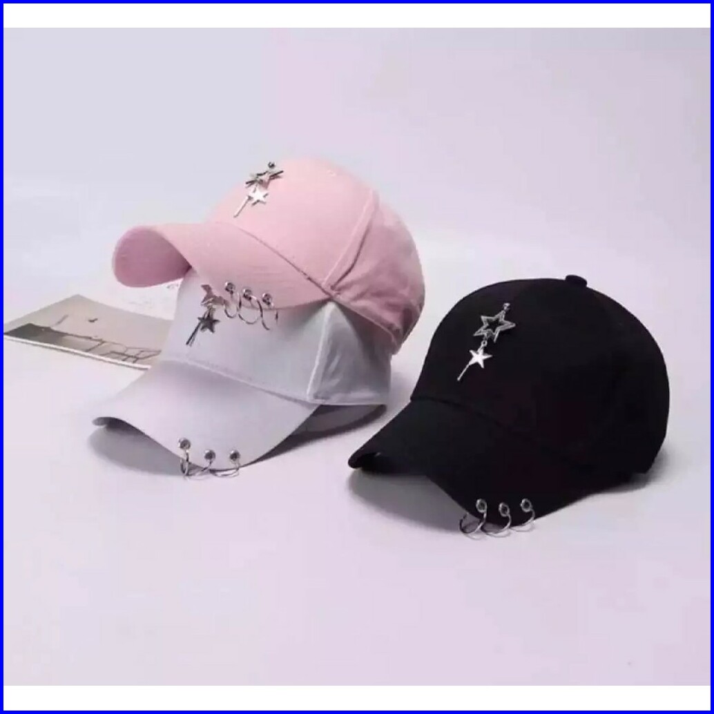 Topi Distro Pria Dan Wanita Topi Unisex Besi Cincin Hip-hop Kasual New Model Topi Anting Korea Karak