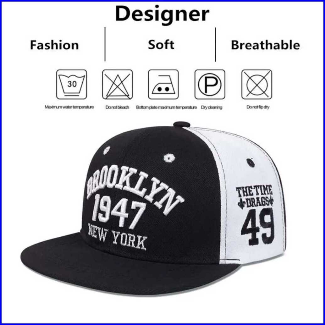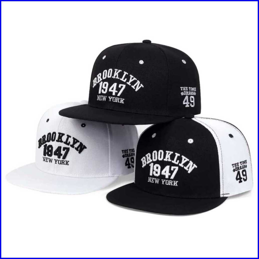 Topi Snapback Bordir Cap Brooklyn 1947 Black White Terbaru 2024 Hat Hiphop Hat Pria Dan Wanita