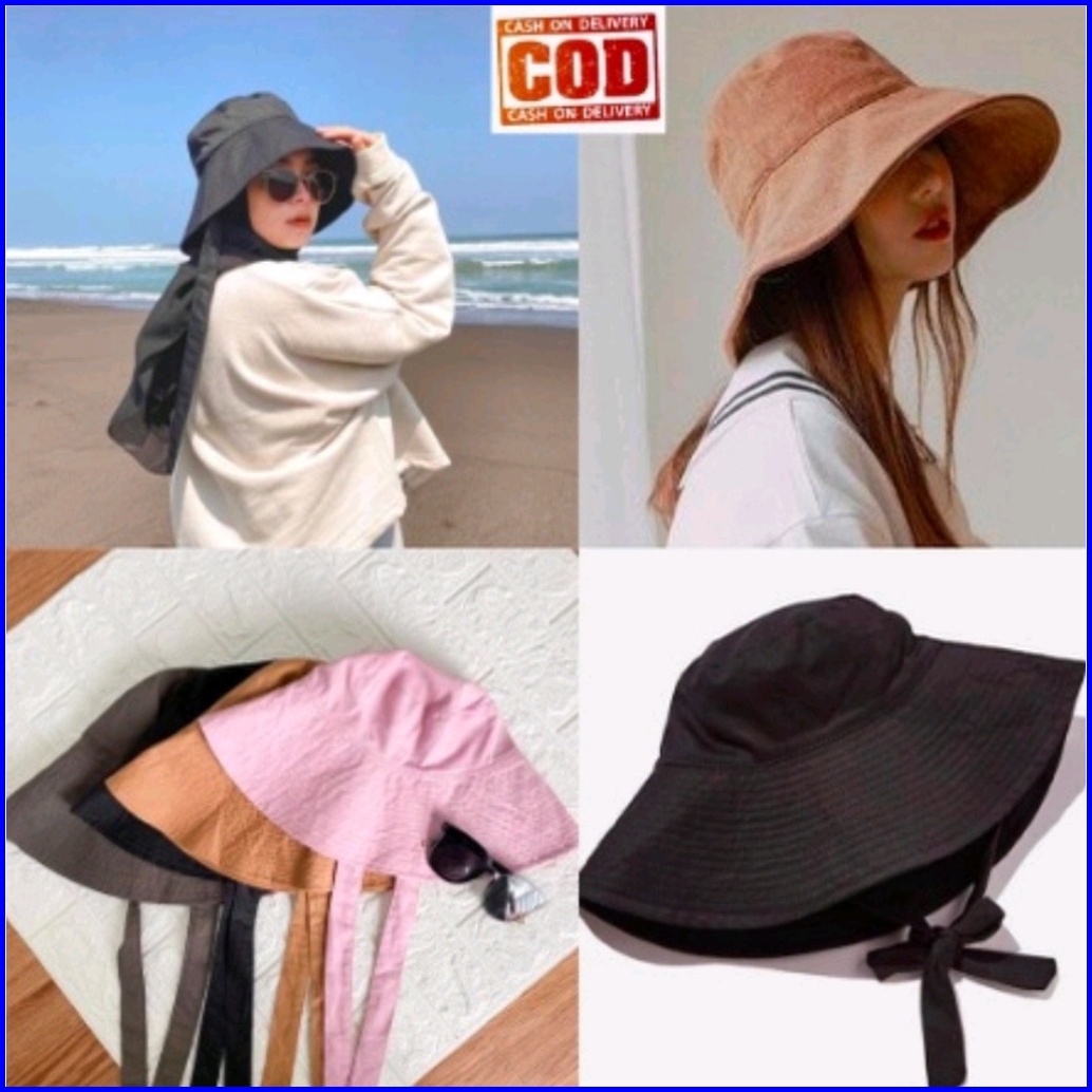 Terlaris Terbaru Topi Bucket Wide Wanita Remaja Berkualitas Import Topi Wide Bucket Hat Pantai Selebgram Tali Panjang To