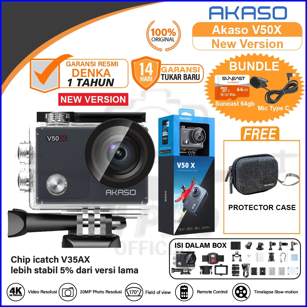 Akaso V50x Cube 4k Action Cam Camera New Version - V50 X V 50x 4k Type-c Garansi Resmi