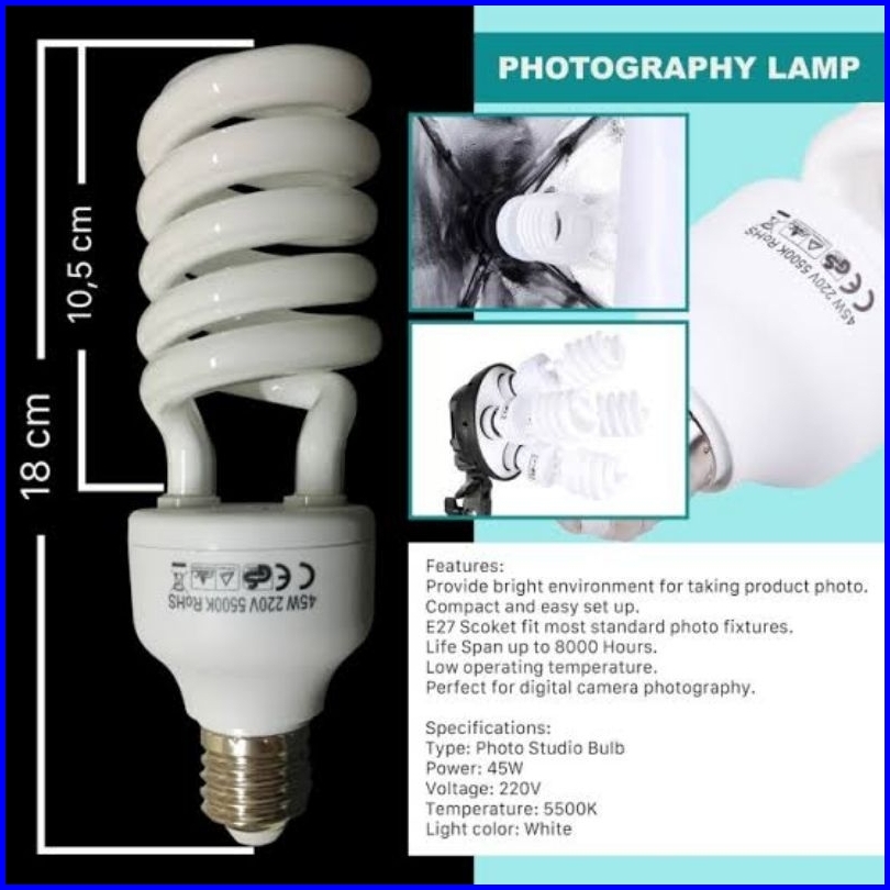 Bohlam 45w Foto Video Light Studio 45watt E27 Lamp Holder 5500k Lampu Photo Soft