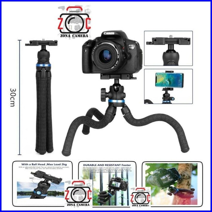 Flexible Dslr Tripod With Foldable Ball Head Phone Mount Holder Hp