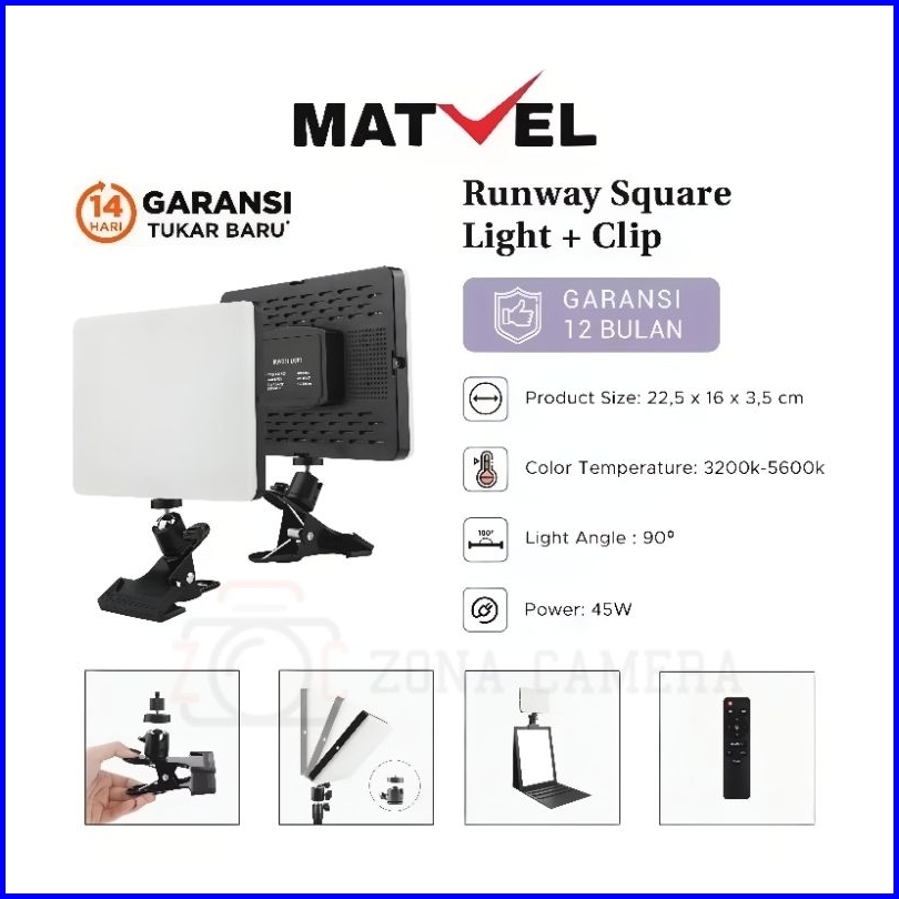 Matvel M240 Runway Square Led Video Light Fill Make Up Mua Artis Lampu Jepit Remote M-240 M 240 Set