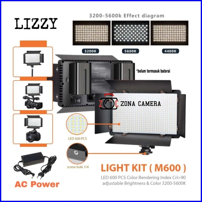 Lizzy Bee M600 Led Video Light 600 Lampu Fill Shooting Foto Bandoor Ac Power Lighting Studio Make Up Rias Bi Color Bicol