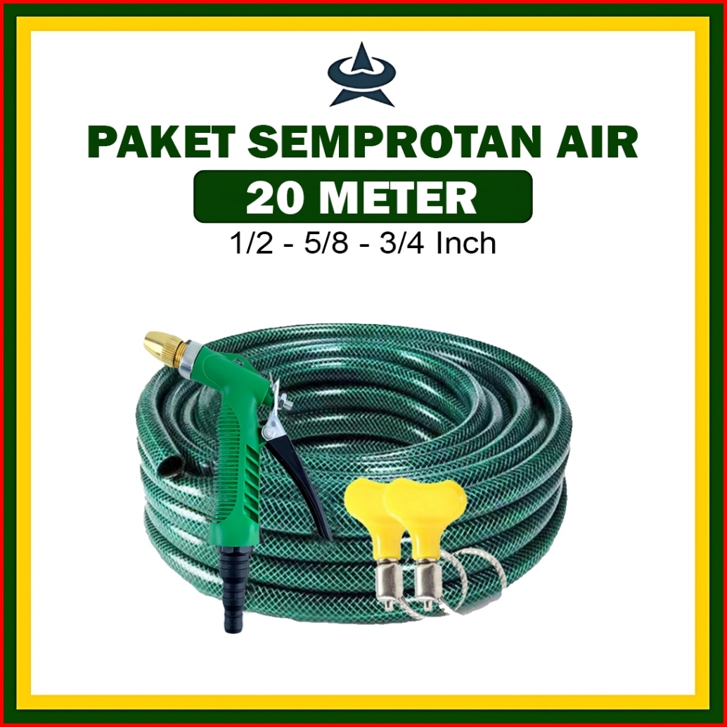 Gemuk Selang Air Cuci Motor 20 Meter Sepaket Selang Air Bening Anti Lumut Tebal Dengan Semprotan Nozzle Selang Air Cuci