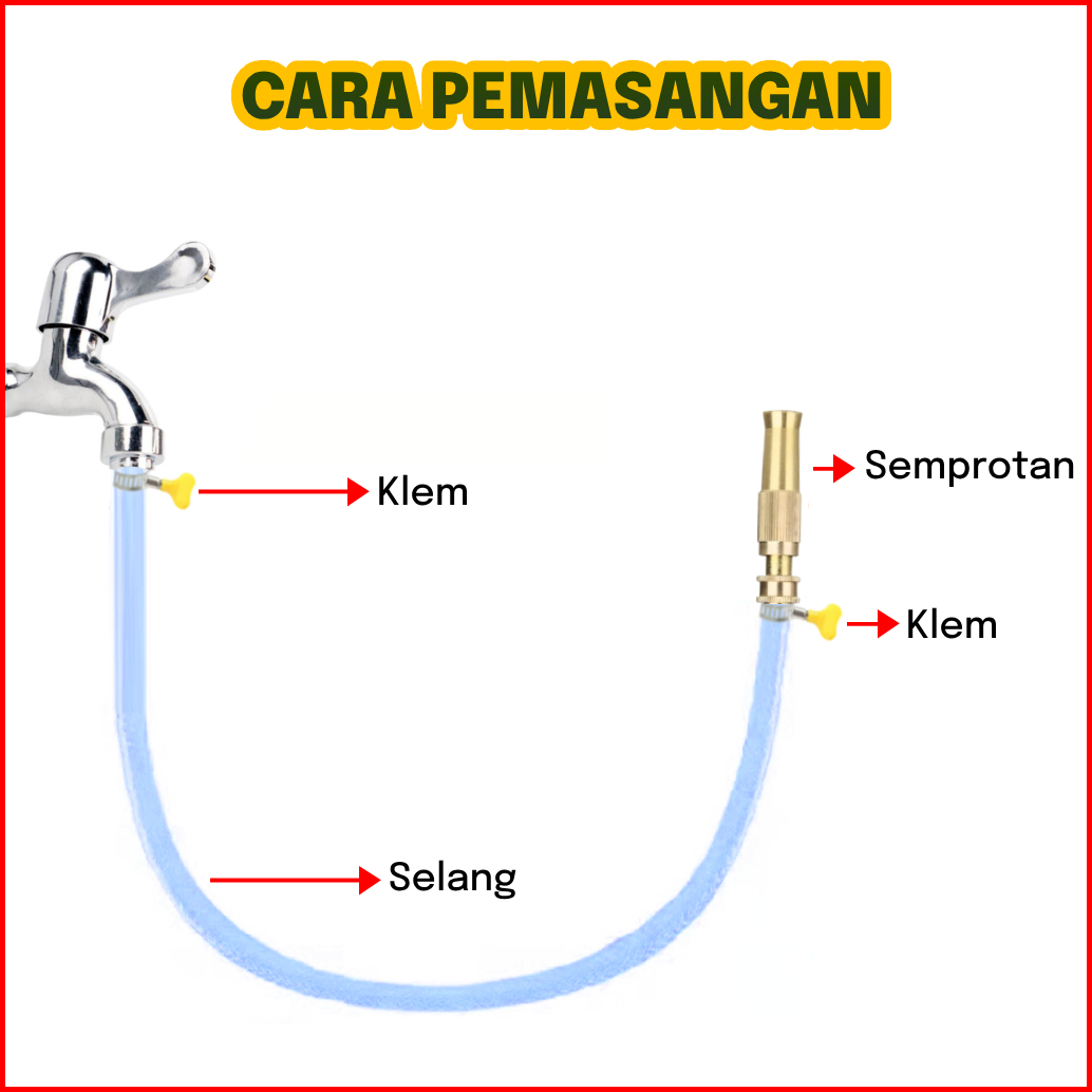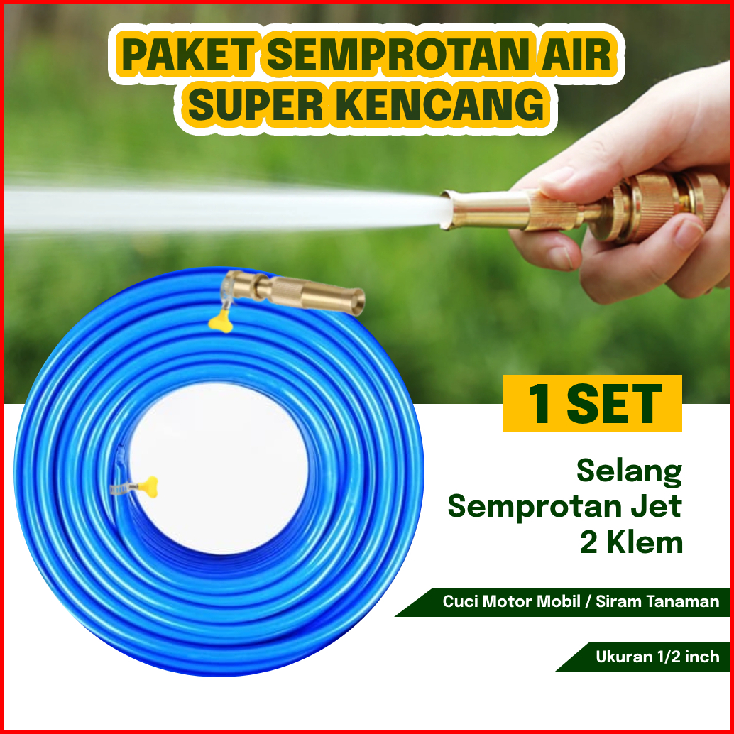 Gemuk Paket Selang Air Semprotan Cuci Motor Mobil Siram Tanaman 15 Meter Selang Air Benang Elastis Dop Dan Semprotan Air
