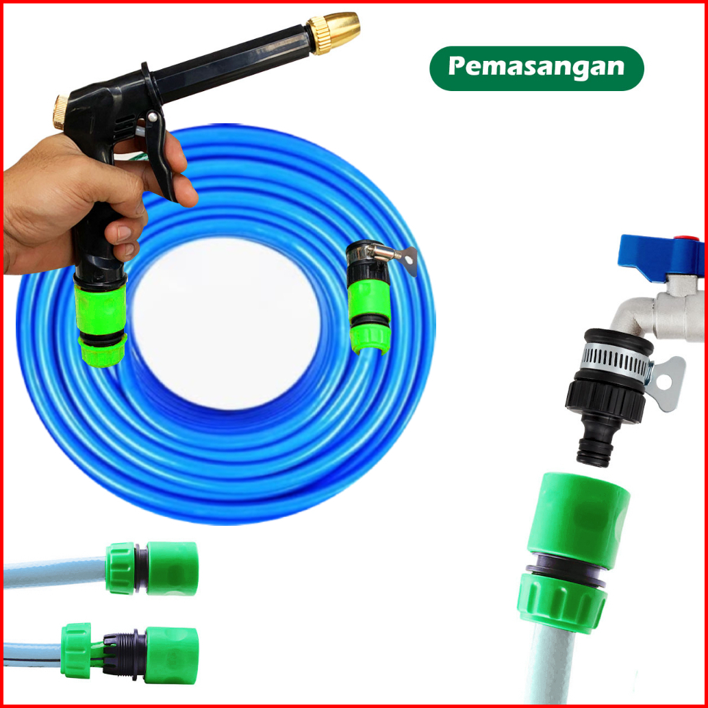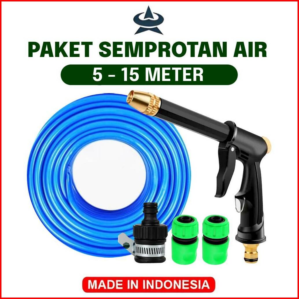 Gemuk Selang Air Cuci Motor 15 Meter Paket Selang Semprotan Air Cuci Mobil Siram Tanaman Selang Elastis Dop Selang Taman