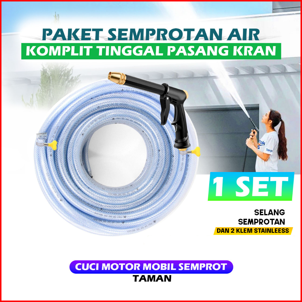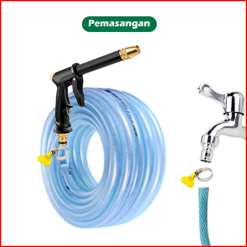 Gemuk Selang Air Cuci Motor 15 Meter Paket Selang Semprotan Air Cuci Mobil Siram Tanaman Selang Benang Transparan Pvc Se