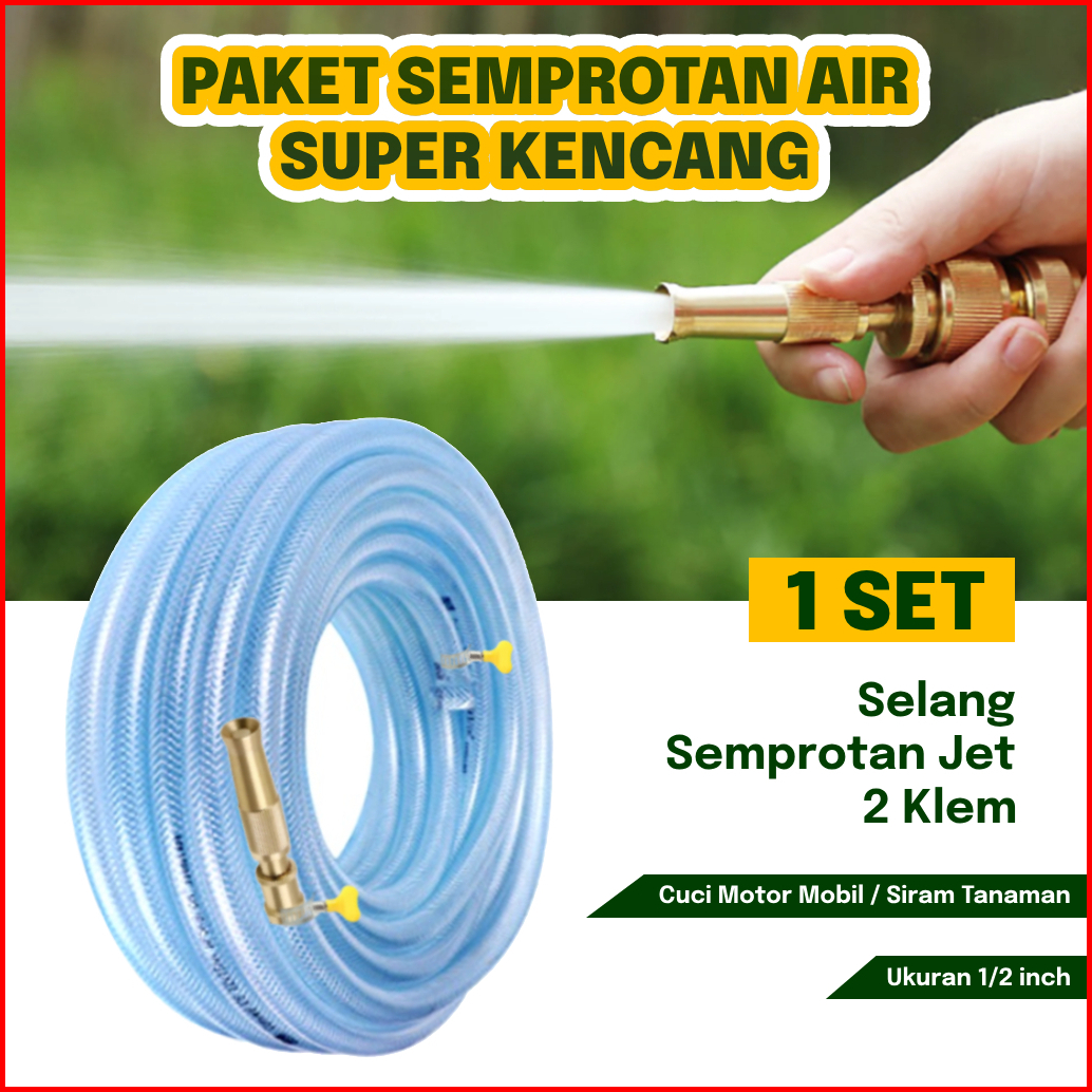 Gemuk Paket Selang Air Semprotan Cuci Motor Mobil Siram Tanaman 15 Meter Selang Air Benang Transparan Pvc Dan Semprotan