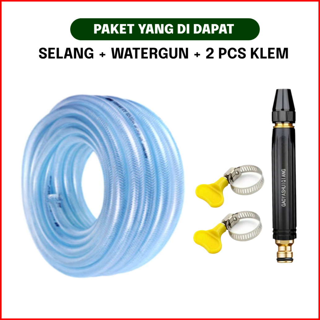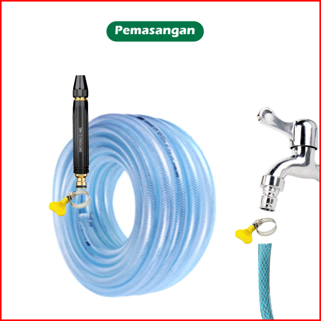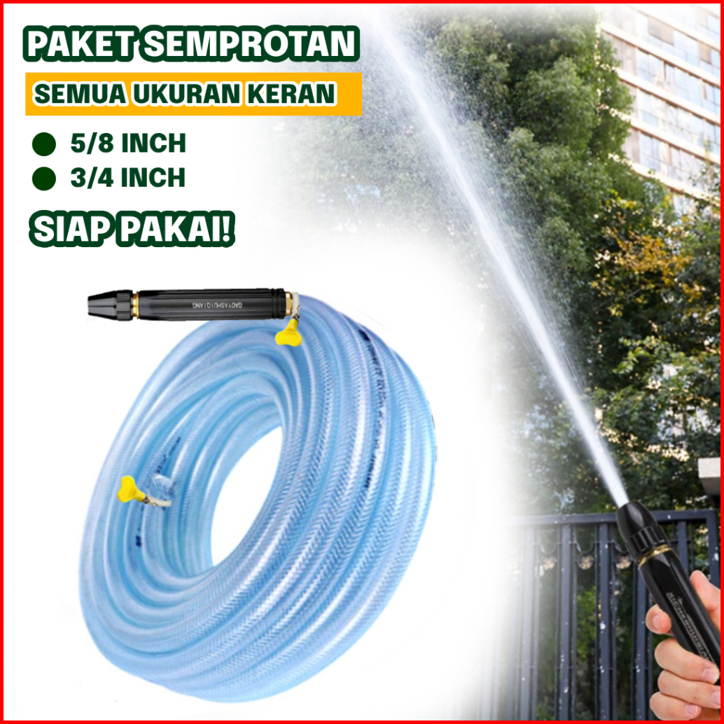 Gemuk Selang Semprotan Air Semprot Cuci Motor Mobil Siram Tanaman Selang Air Paketan 2 - 15 Meter Selang Benang Transpar