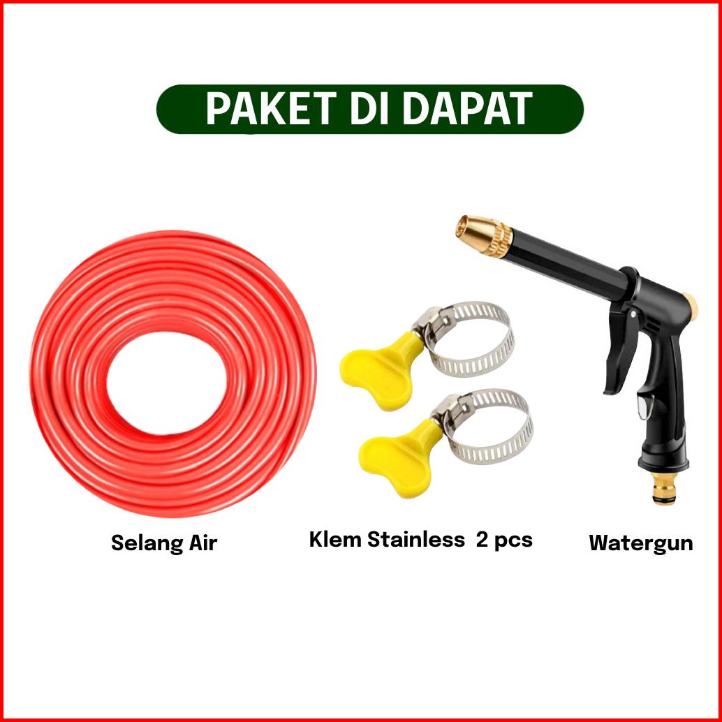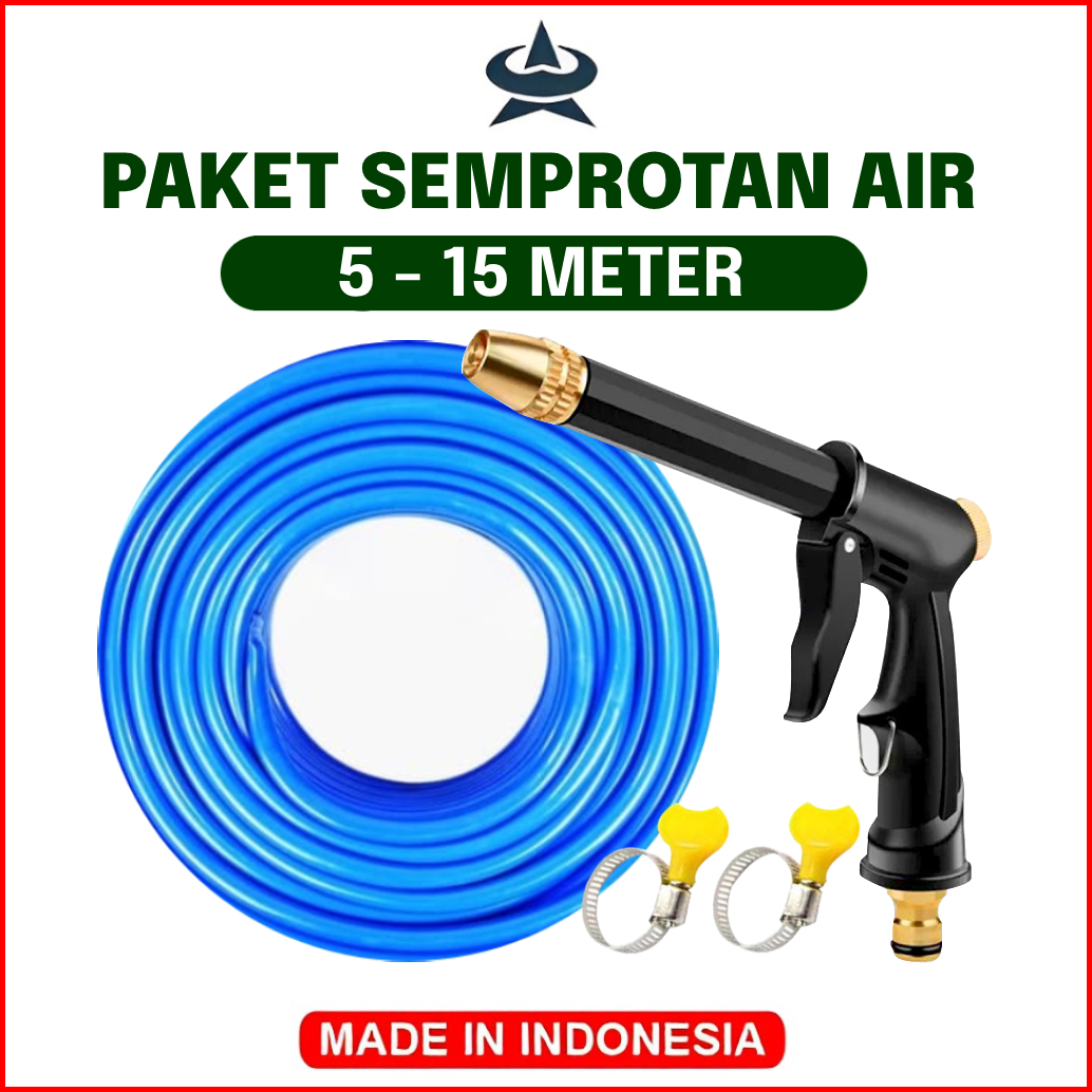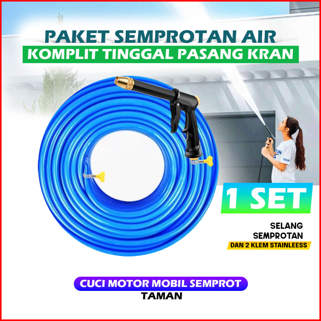 Gemuk Selang Air Cuci Motor 15 Meter Paket Selang Semprotan Air Cuci Mobil Siram Tanaman Selang Elastis Dop Selang Taman