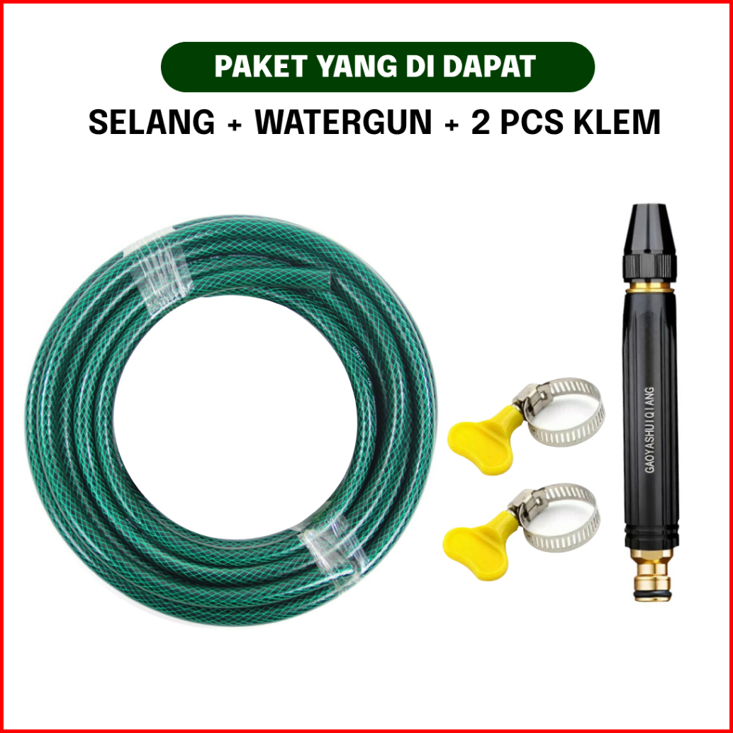 Gemuk Selang Semprotan Air Semprot Cuci Motor Mobil Siram Tanaman Selang Air Paketan 2 - 15 Meter Selang Benang Anti Lum