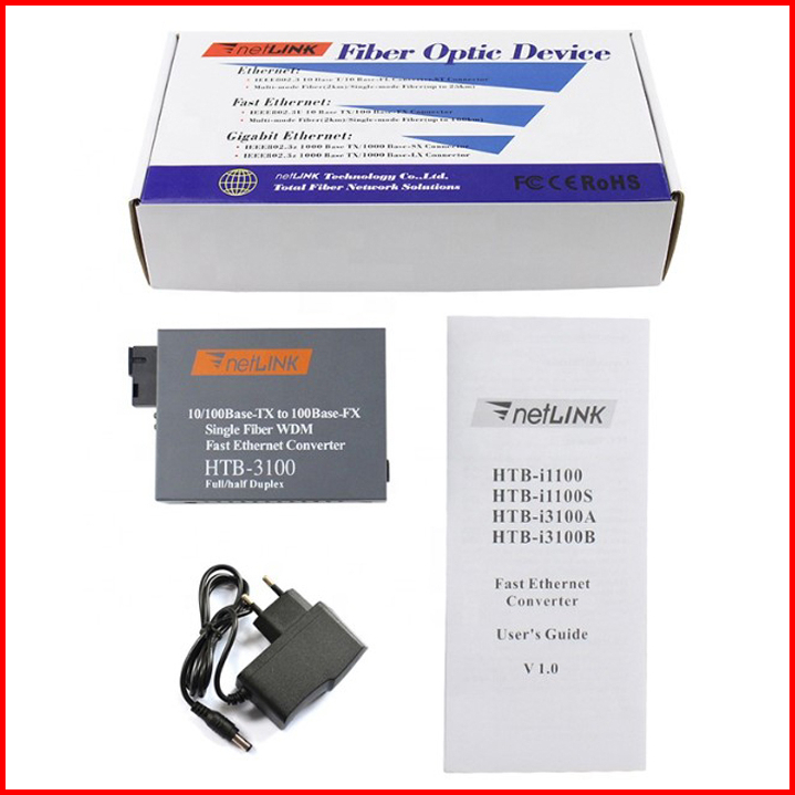 Netlink Htb-3100 A B Fiber Optical Media Converter Rj45 25km 10 100m - Htb-3100 A