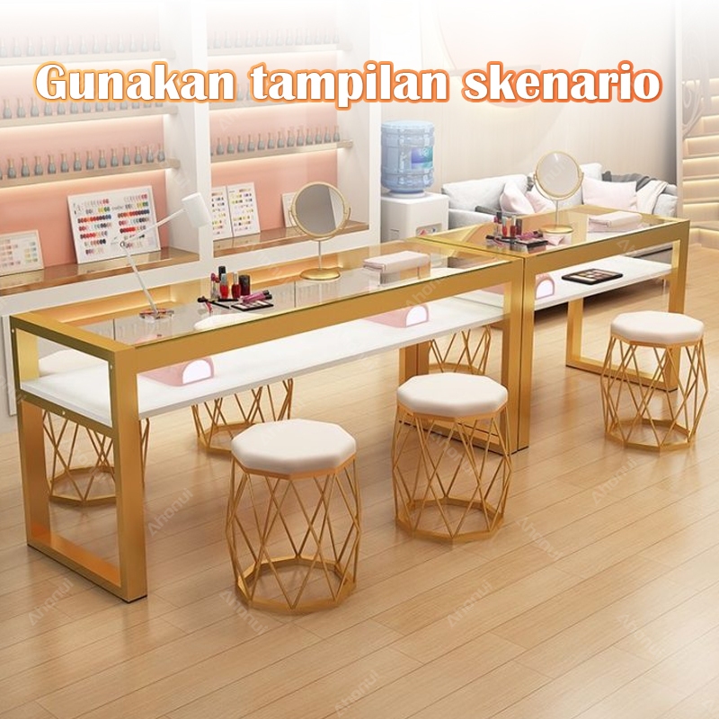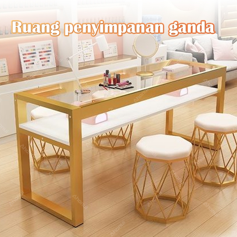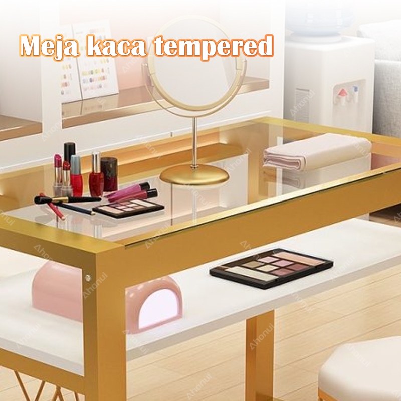 [Star]Meja Nail Art Mewah Emas Meja Nail Art Minimalis Rias Salon Cocok Untuk Salon Kecantikan Kaca Temper