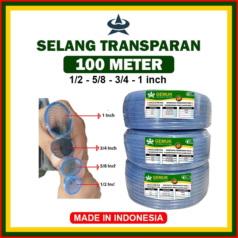Gemuk Gemuk Selang Air 100 Meter 1 2 5 8 3 4 1 Inch Selang Benang Transparan Pvc Selang Cuci Motor Mobil Siram Tanaman S