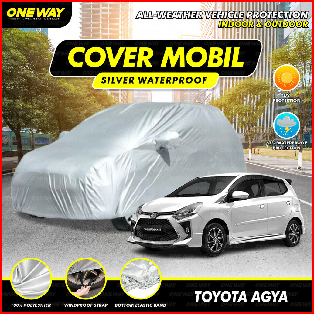 Oneway Body Cover Mobil Sarung Penutup Mobil Agya Ayla Polyesther Silver Waterproof Anti Air Anti Debu