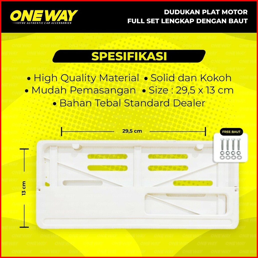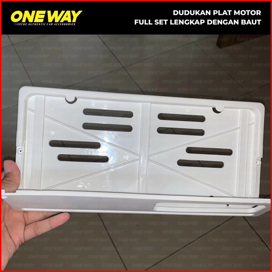 Oneway Dudukan Tempat Tatakan Plat Nomor Motor Frame Cover Plat Motor Putih Set Baut Pemasangan