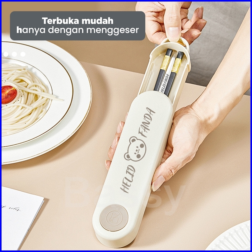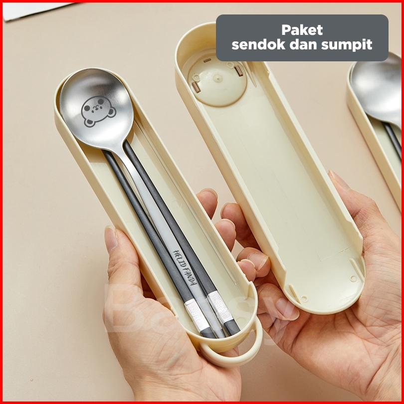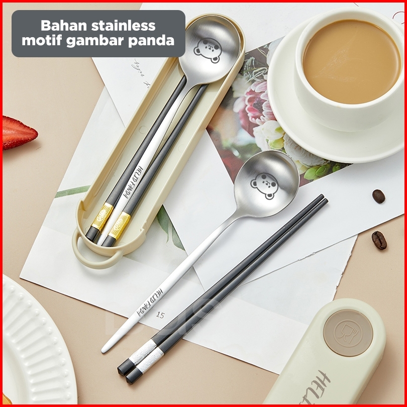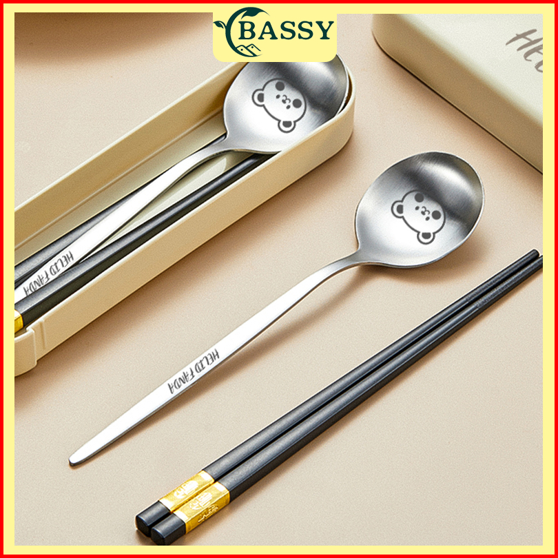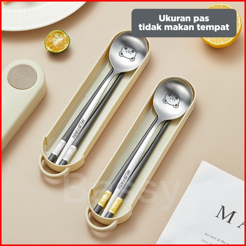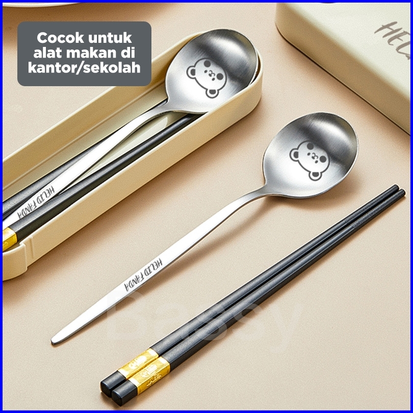 Bassy Alat Makan Sendok Sumpit Set Peralatan Makan Stainless Food Grade Sendok Souvenir Hmb112