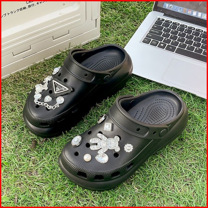 Bassy Sandal Fuji Wanita Wedges Platfrom Jibbitz Kekinian Sendal Cewe Terbaru Lucu Sandal Baimhsn105