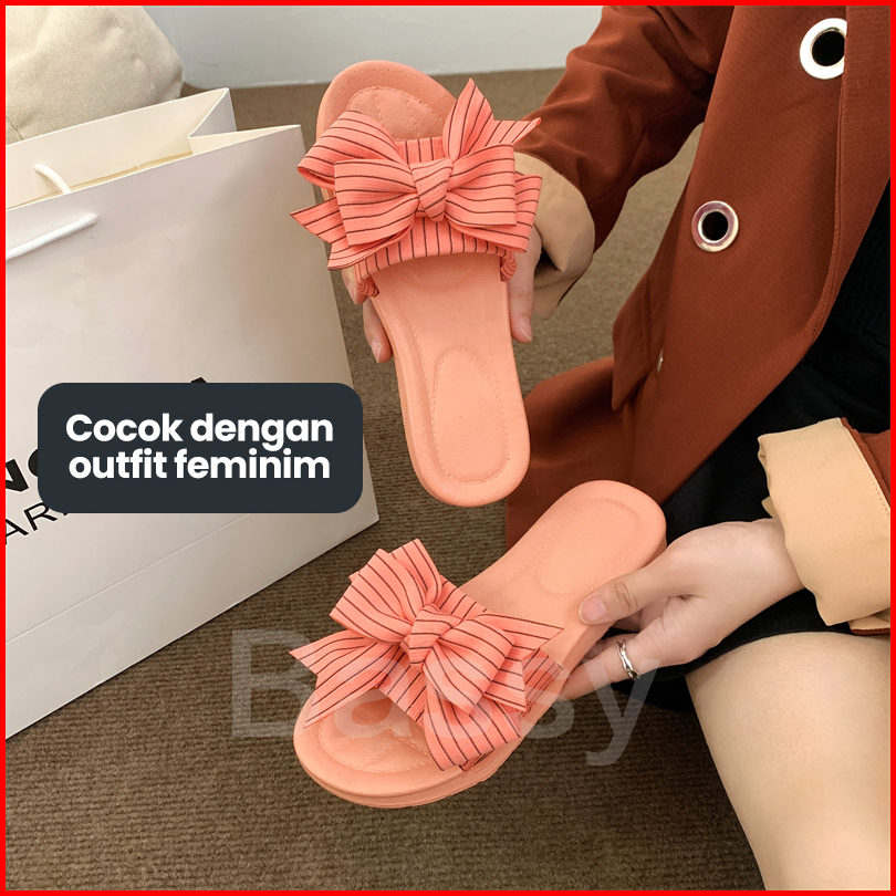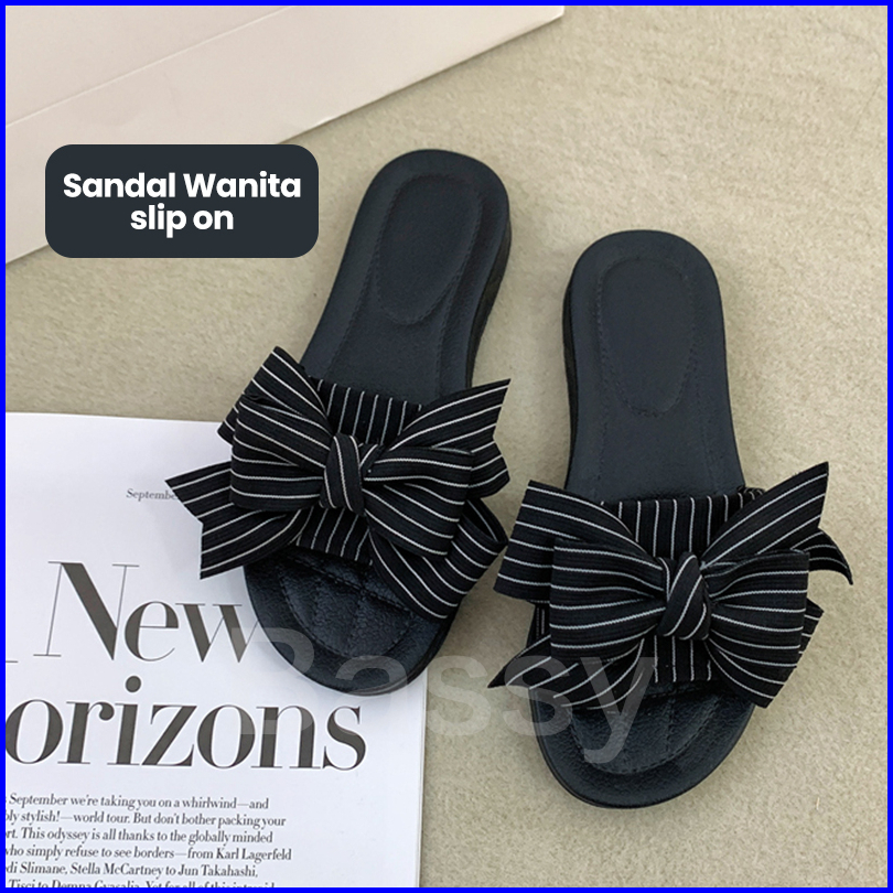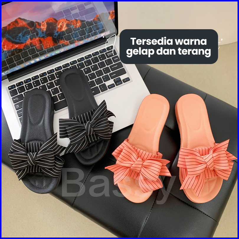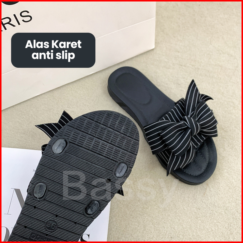 Bassy Sendal Wanita Sandal Flat Karet Wanita Sendal Korea Import Anti Slip Hsn119