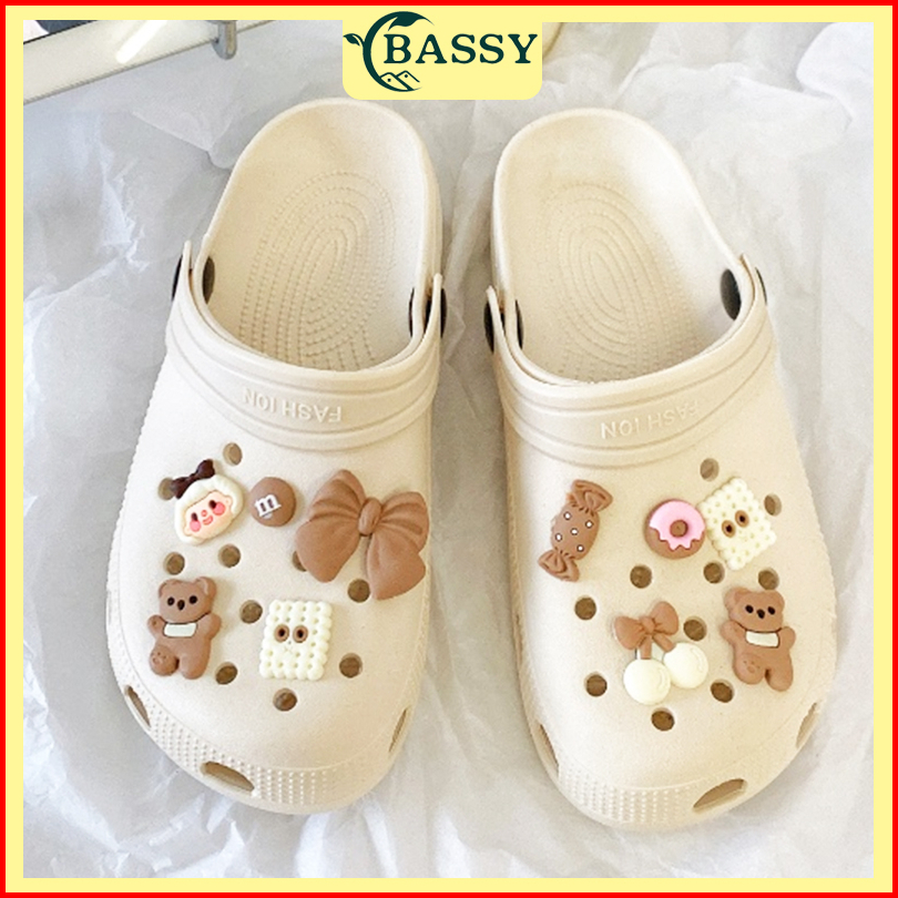 Bassy Sandal Wanita Jelly Anti Slip Sendal Karet Motif Crocs Sandal Rumah Tali Belakang Elastis Hsn105