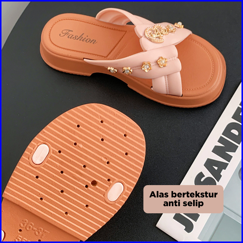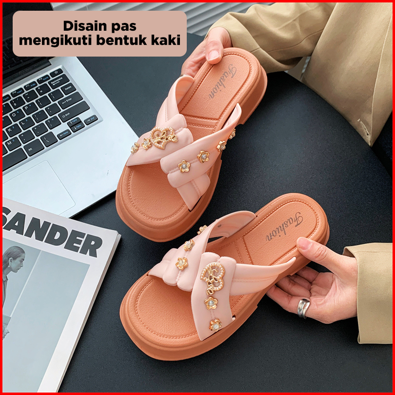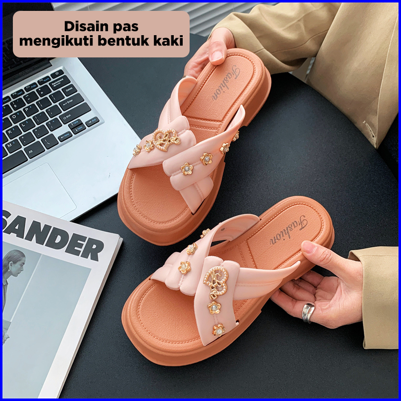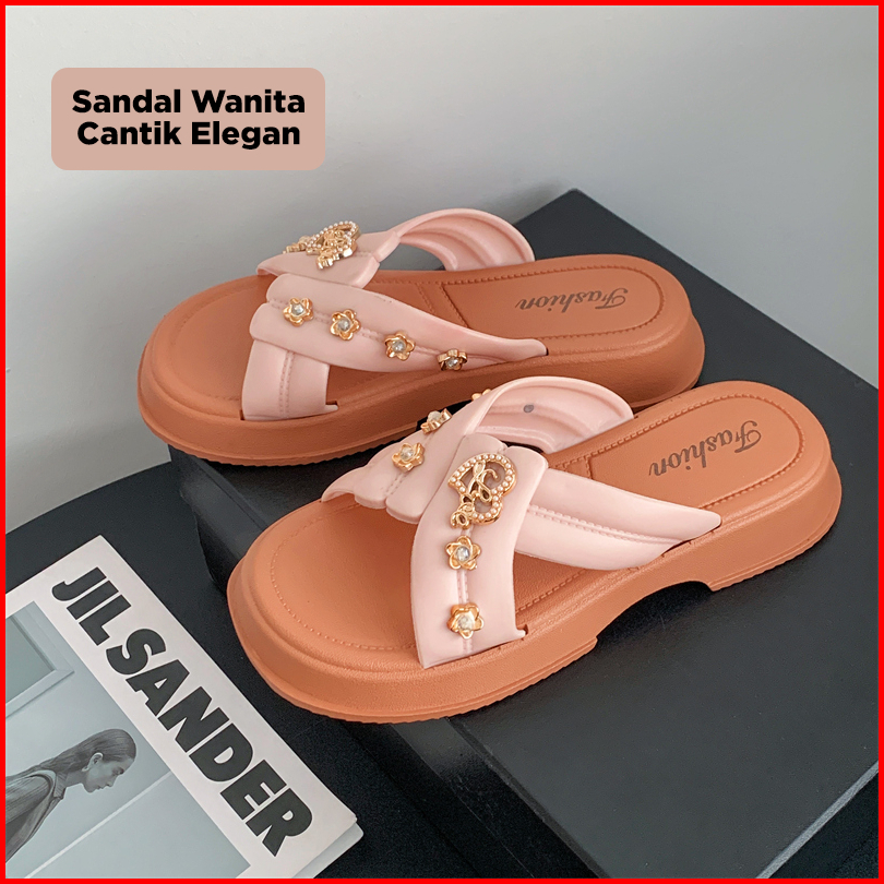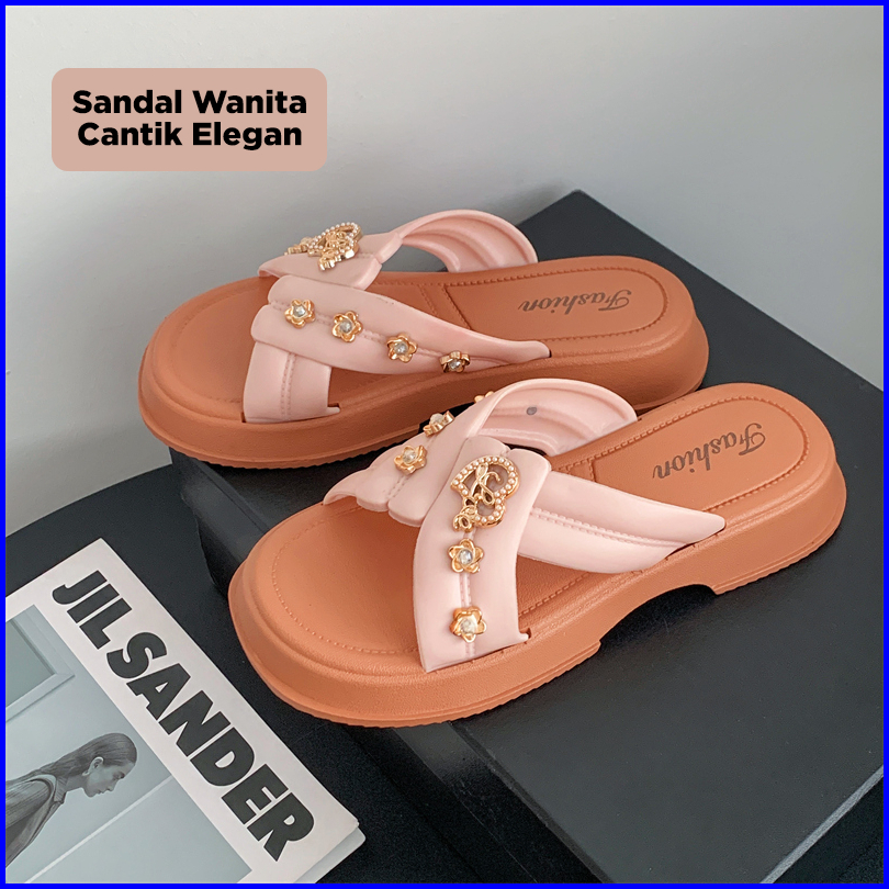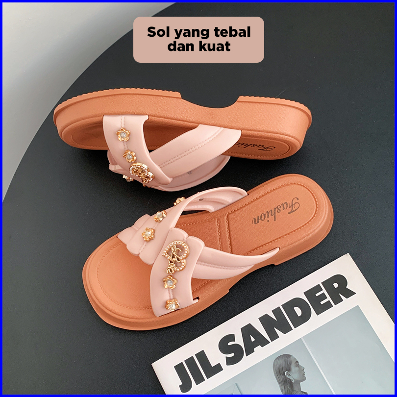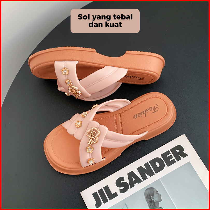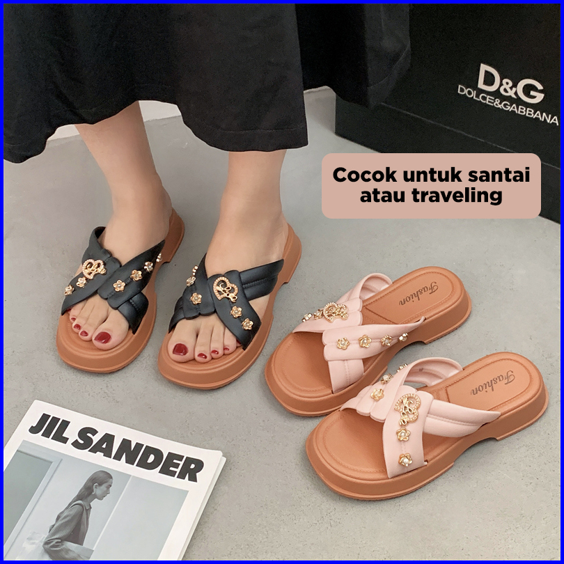 Bassy Sandal Wanita Kasual Istilah Rantai Terbaru Sandal Luar Ruangan Fashion Karet Lembut Hsn211