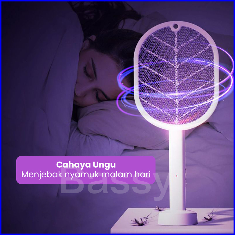 Bassy Raket Listrik 2in1 Raket Pembunuh Nyamuk Elektrik Led Light Raket Nyamuk Aesthetic Pembasmi Hama Heg202