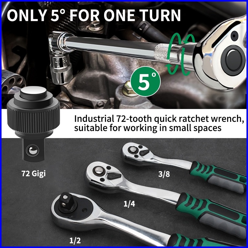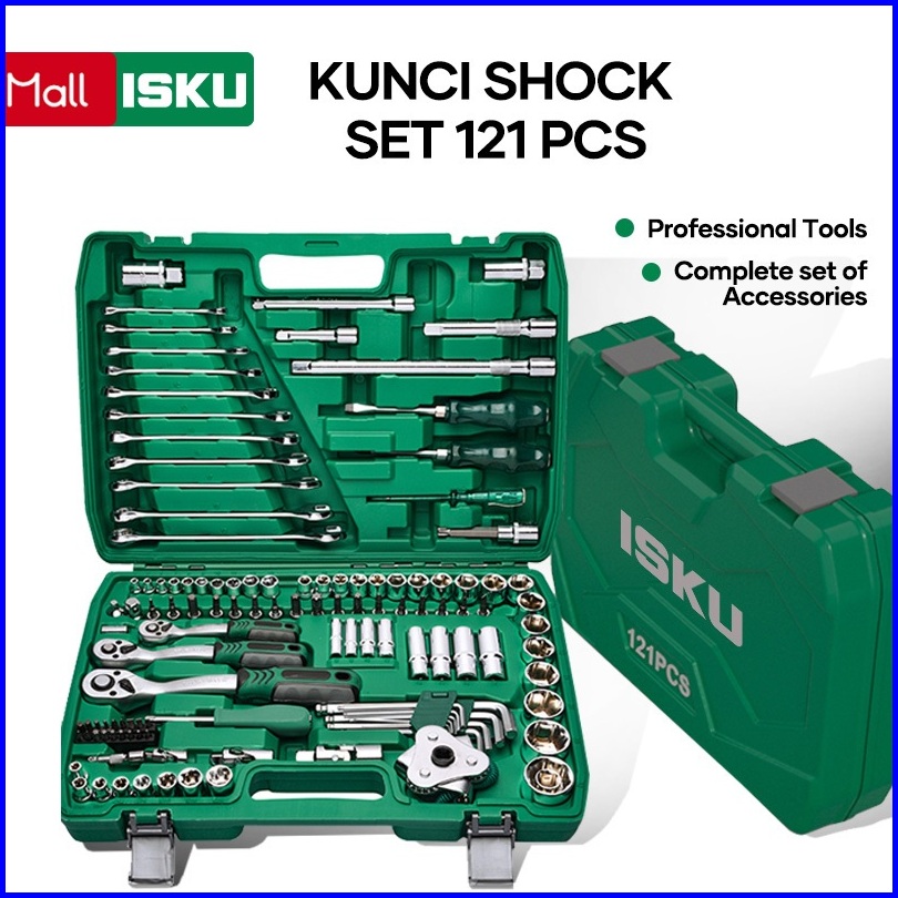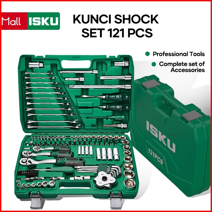 Isku Tools Set 121pcs-72gigi Kunci Shock Set Lengkap Termasuk 1 Set Kunci Pas Ratchet Lengkap 72gigi 1 2 1 4 3 8 Dan 44p
