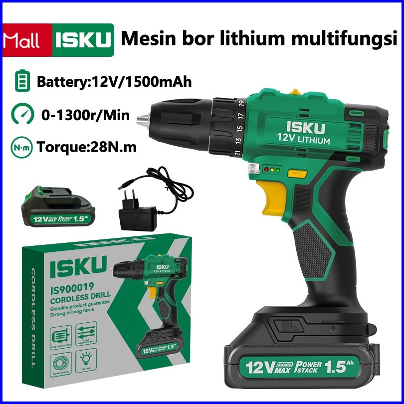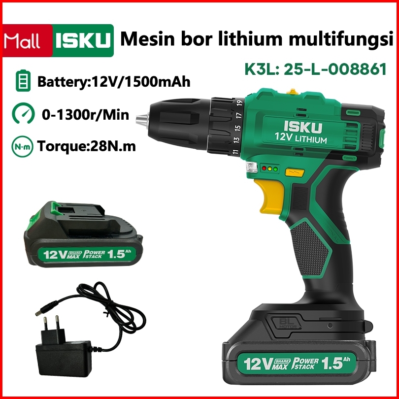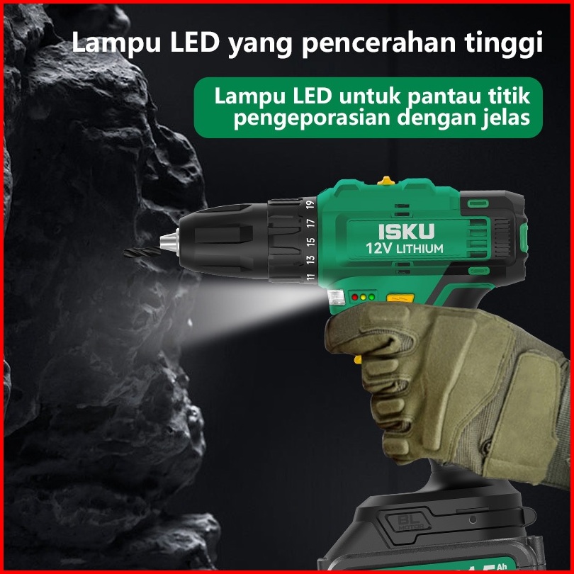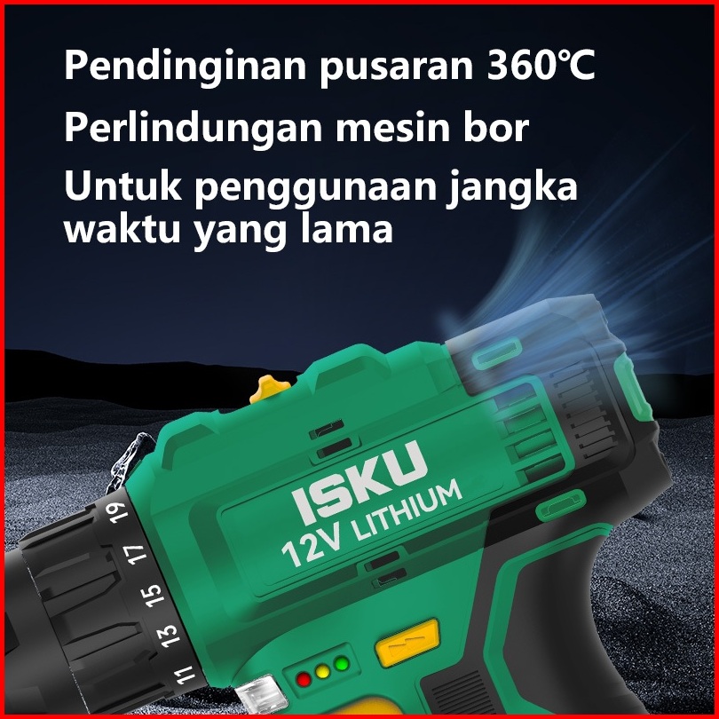 Isku Bor Baterai Mulitifungsi 12v 1500mah Battery Cordless Drill Mesin Bor Lithium Lithium Electric Dril 12v Mesin Bor L