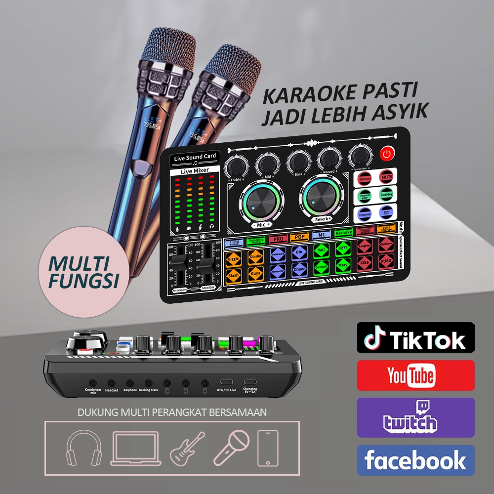 Siaran Langsung Sound Card Khusus Set Lengkap Peralatan Dengan Mikrofon Nirkabel - Soundcard Bluetooth F999 Audio