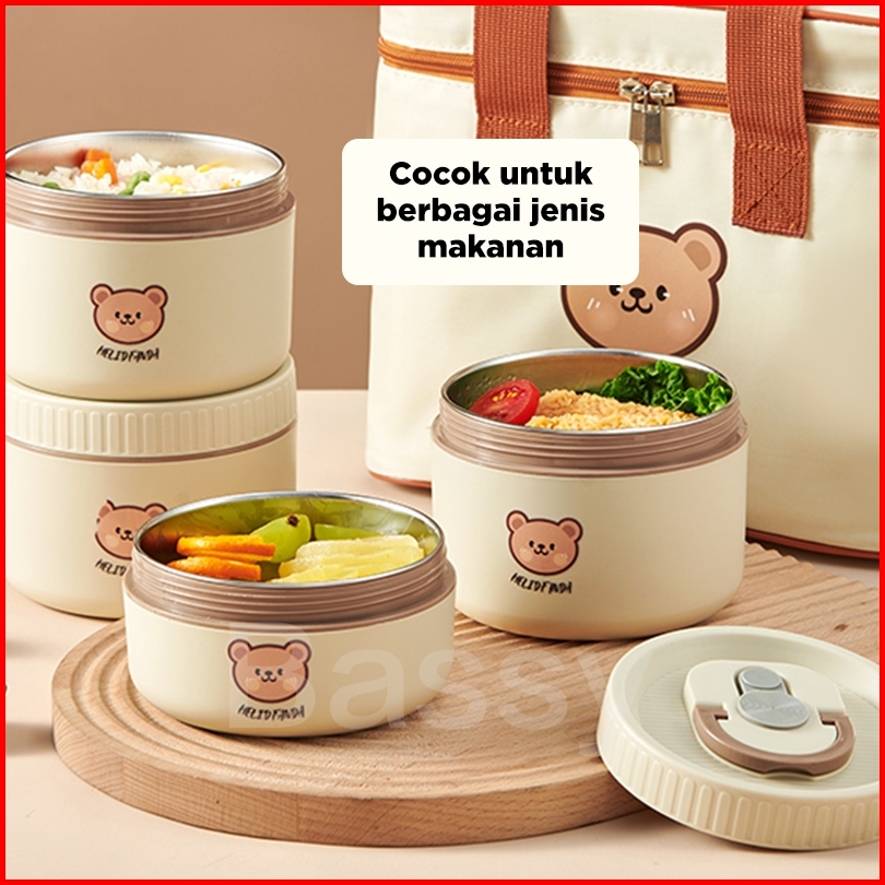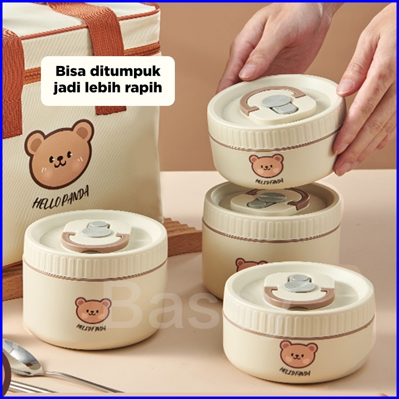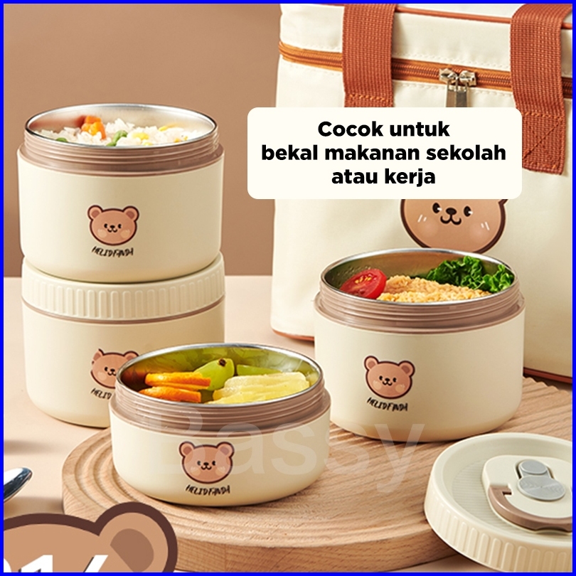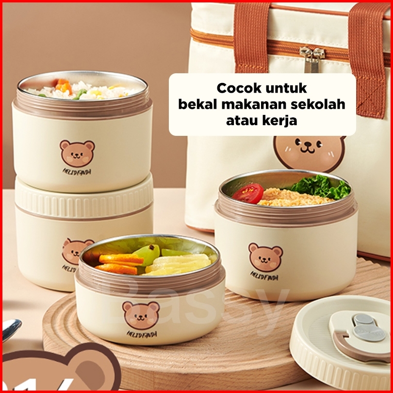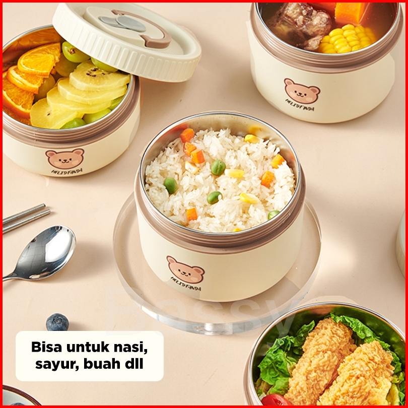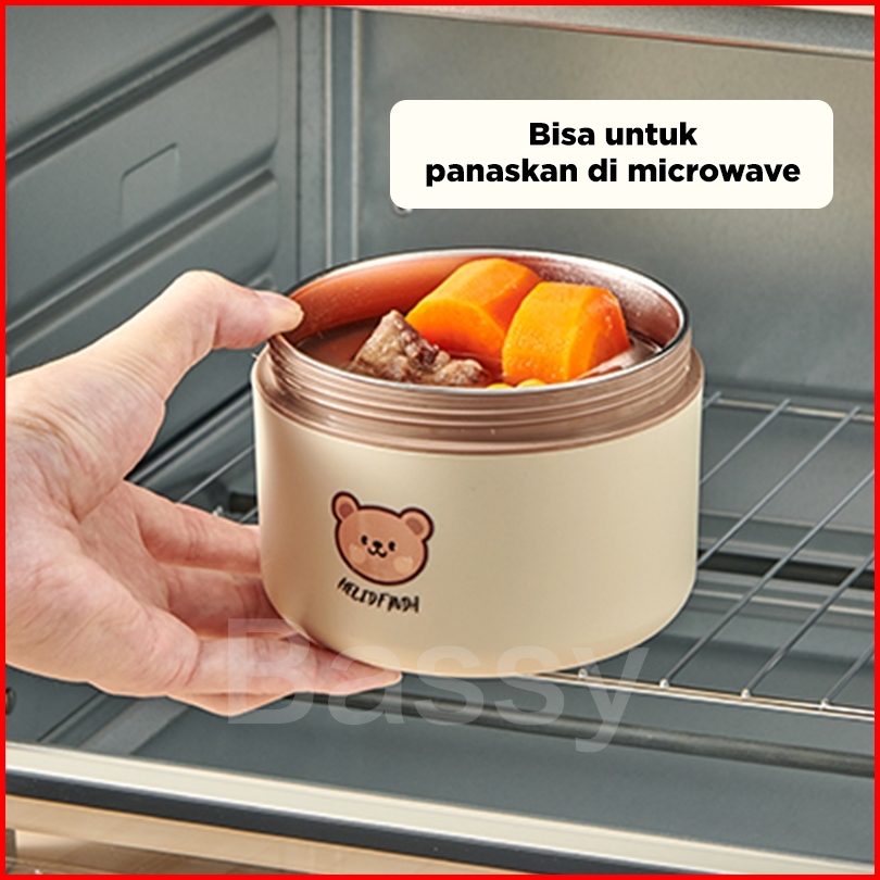 Bassy Lunchbox Stainless Tempat Bekal Sup Termos Mini Thermal Kotak Bekal Makan Tahan Panas Hmb108