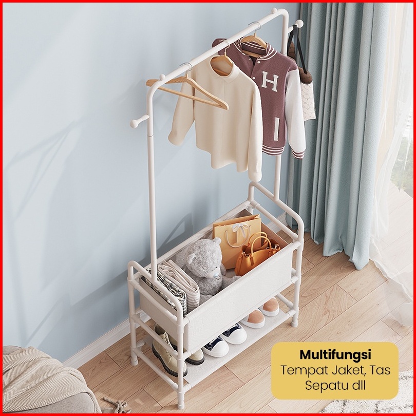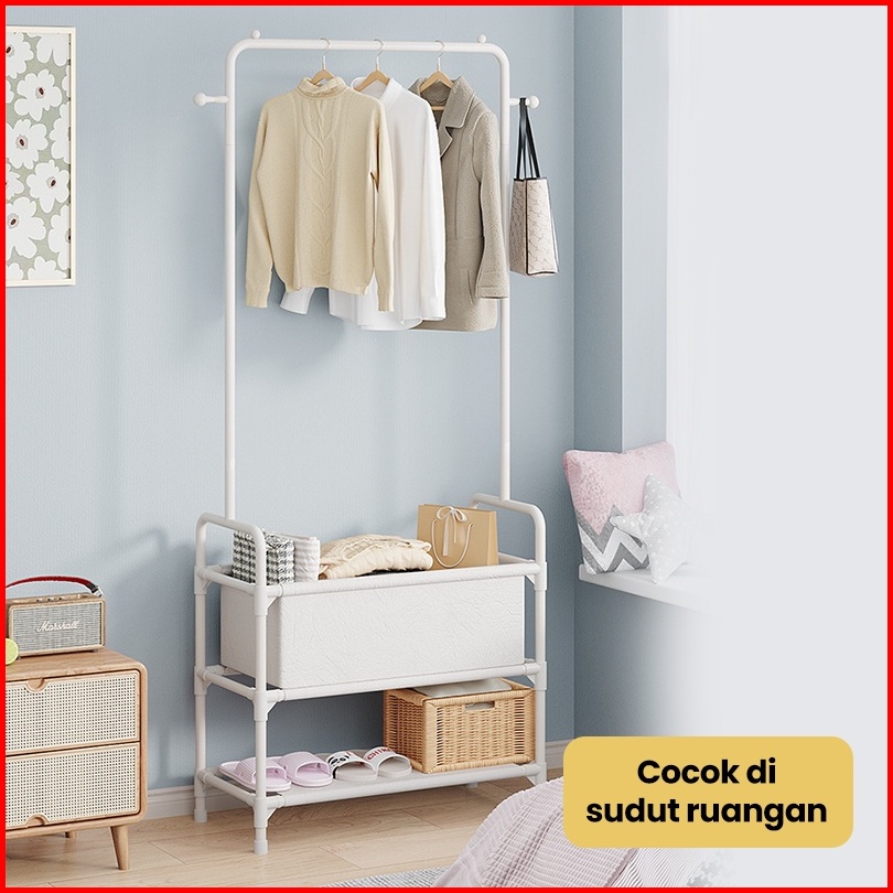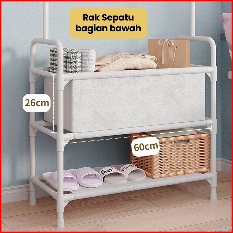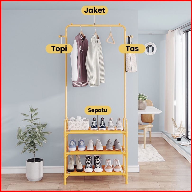 Bassy Rak Gantungan Baju Topi Rak Sepatu Stand Hanger Display Jemuran Pakaian Rak Besi Tempat Penyimpanan Pakaian Hsh120