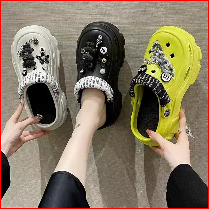 Bassy Sandal Slop Eva Baim Wanita Spons Karet Tebal 6.6cm Platform Sol Empuk Bear Hsn199