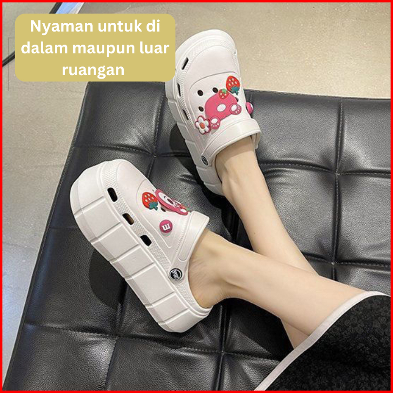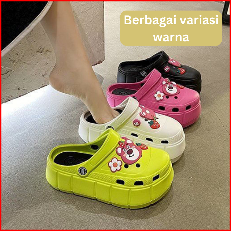 Bassy Sandal Wanita Sandal Karet Rumah Slop Slip On Elastis Anti Slip Sepatu Sendal Santai Hsn117