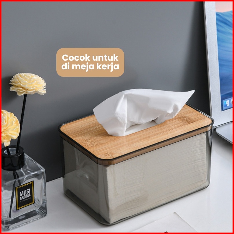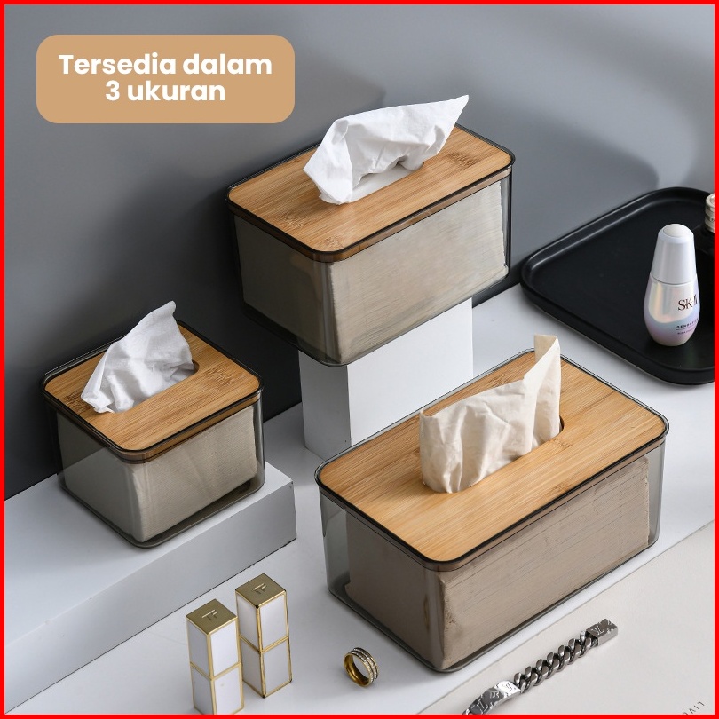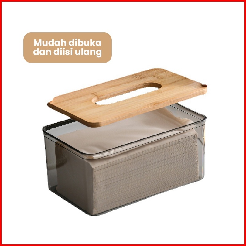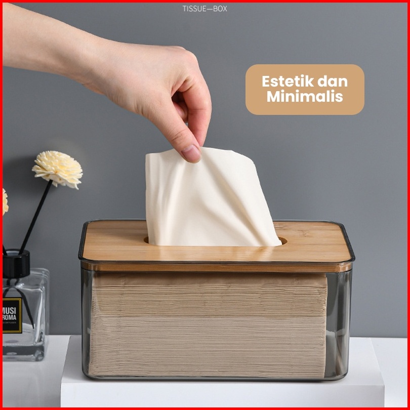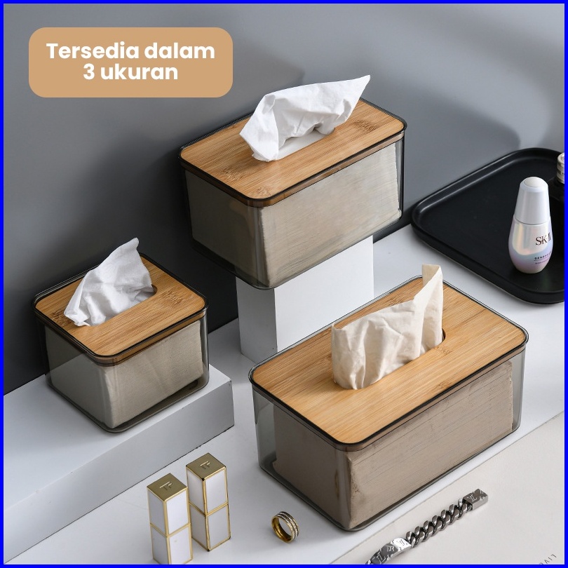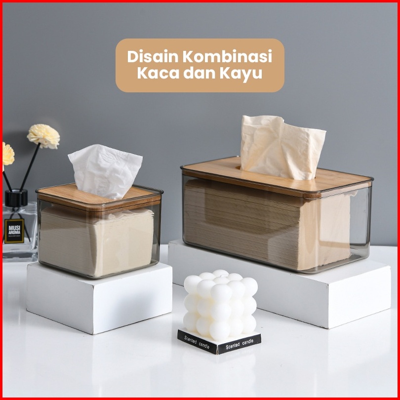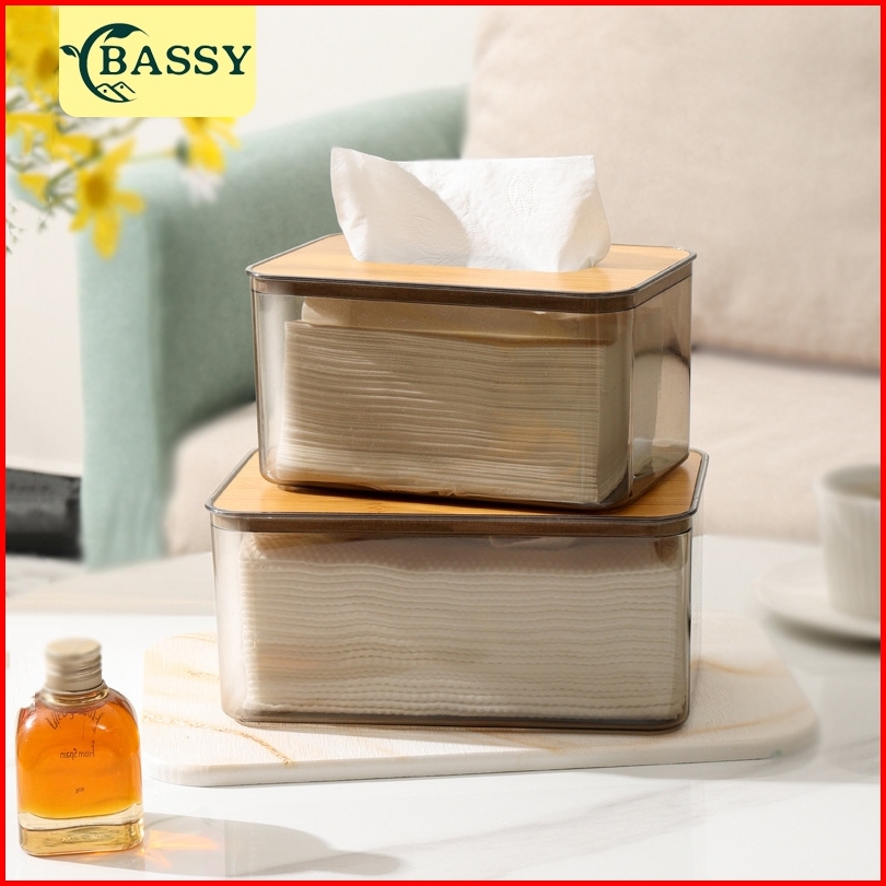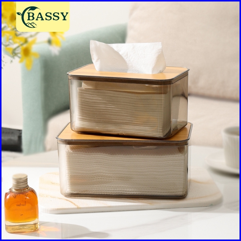 Bassy Tempat Tisu Kotak Tisu Kayu Transparan Organizer Modern Minimalis Anti Debu Tahan Lama Multifungsi Untuk Kamar Man