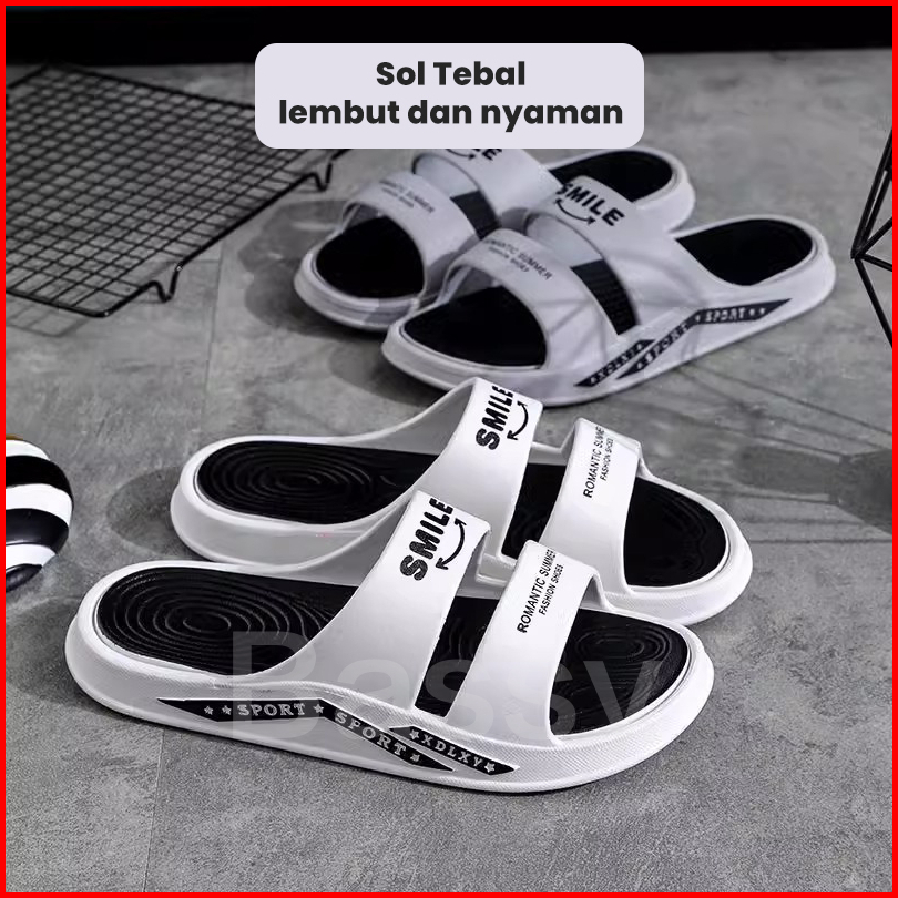 Bassy Sendal Pria Slip On Sepatu Sandal Karet Slop Cowok Kekinian Sendal Rumah Slipper Kekinian Hsn175