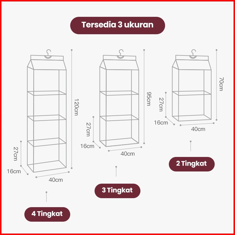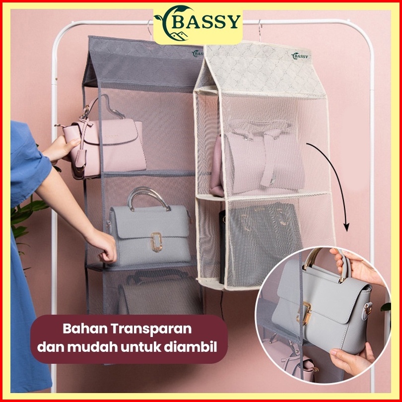 Bassy Rak Tas Gantungan Tempat Penyimpanan Tas Susun Anti Debu Organizer Bag Storage Tas Hdk306