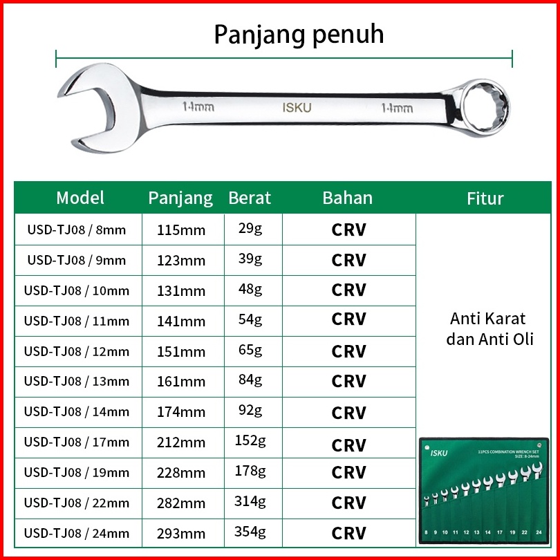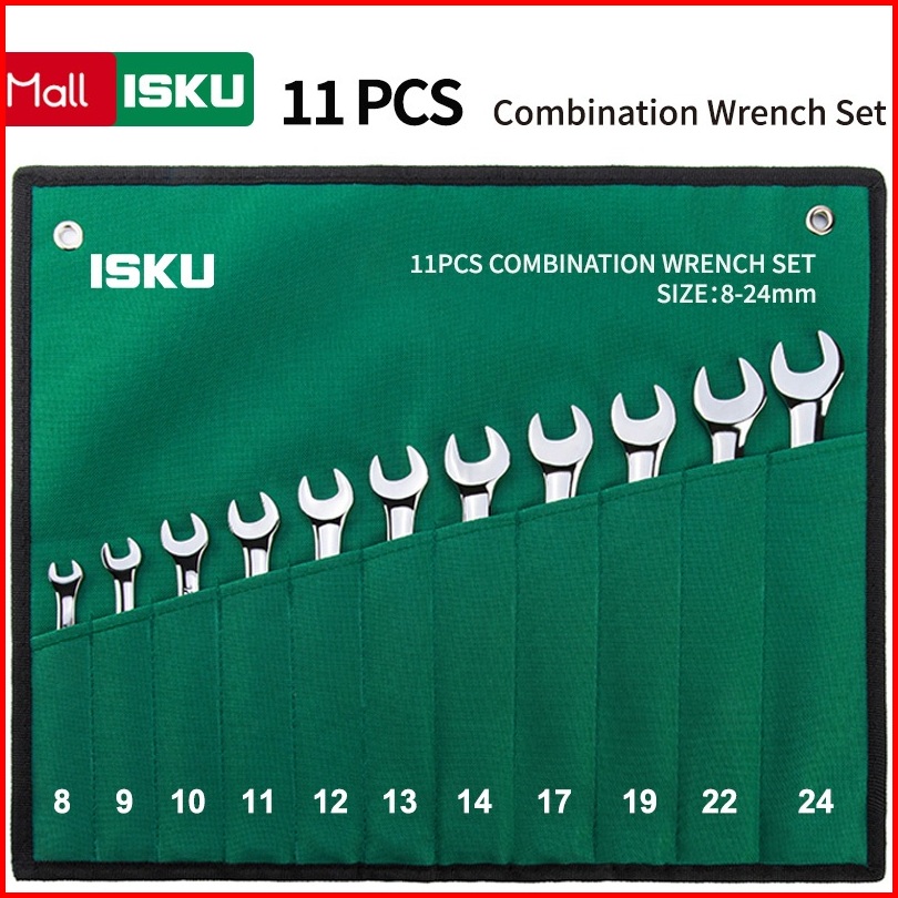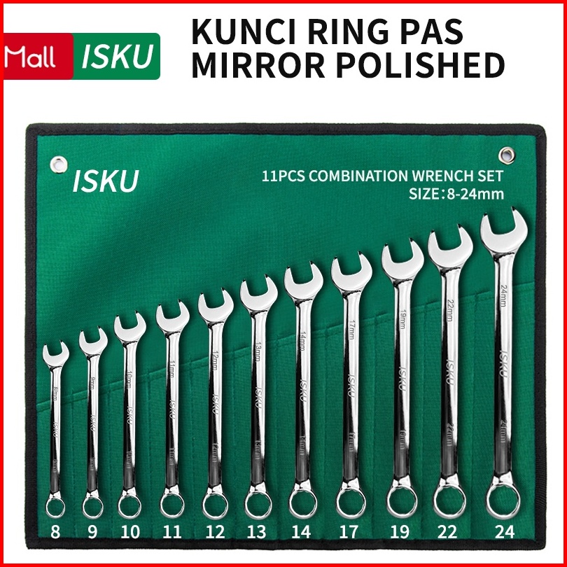 Isku Kunci Ring Pas Set 11pcs 8-24mm Dengan Tas Penyimpanan Kunci Pcs Set 8-24mm Set 11 Pcs Kunci Ring Pas Set Tools