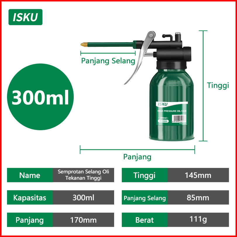 Isku Oli Can 300ml 350ml High Pressure Botol Pompa Oli Metal Pot Body Tidak Mudah Bocor Semprotan Oli Minyak 350ml