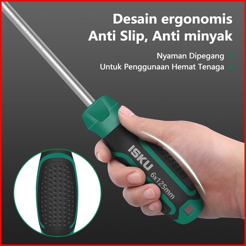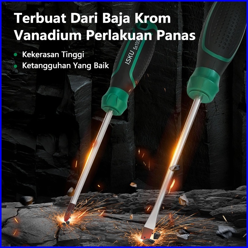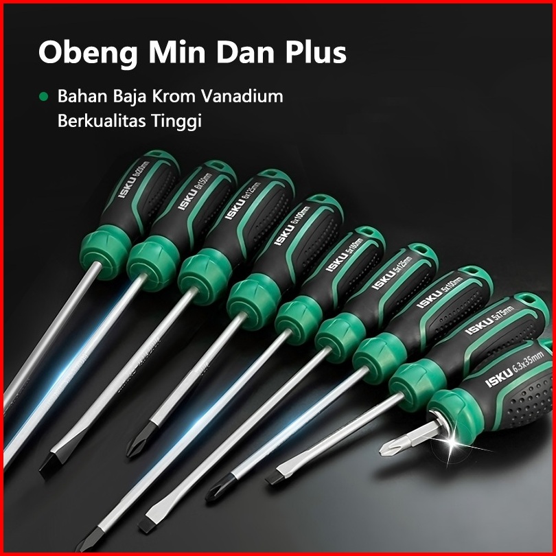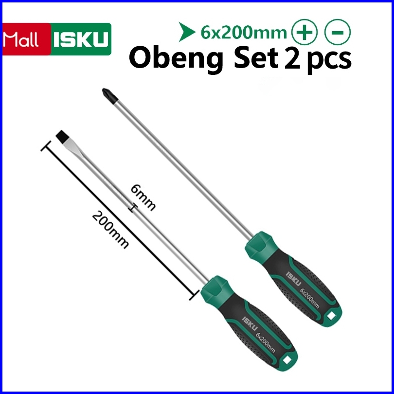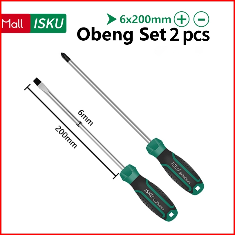 Isku Obeng Set 2pcs 6 200mm Magnet Plus Dan Minus Screwdriver Set Kuat Bahan Chrome Vanadium