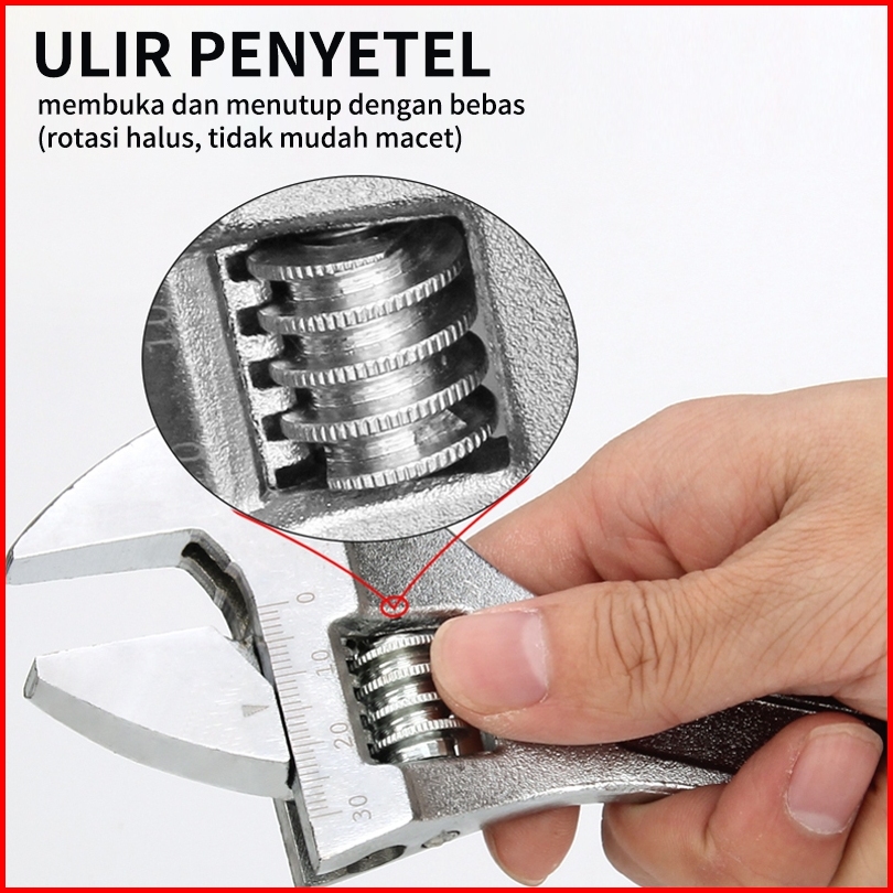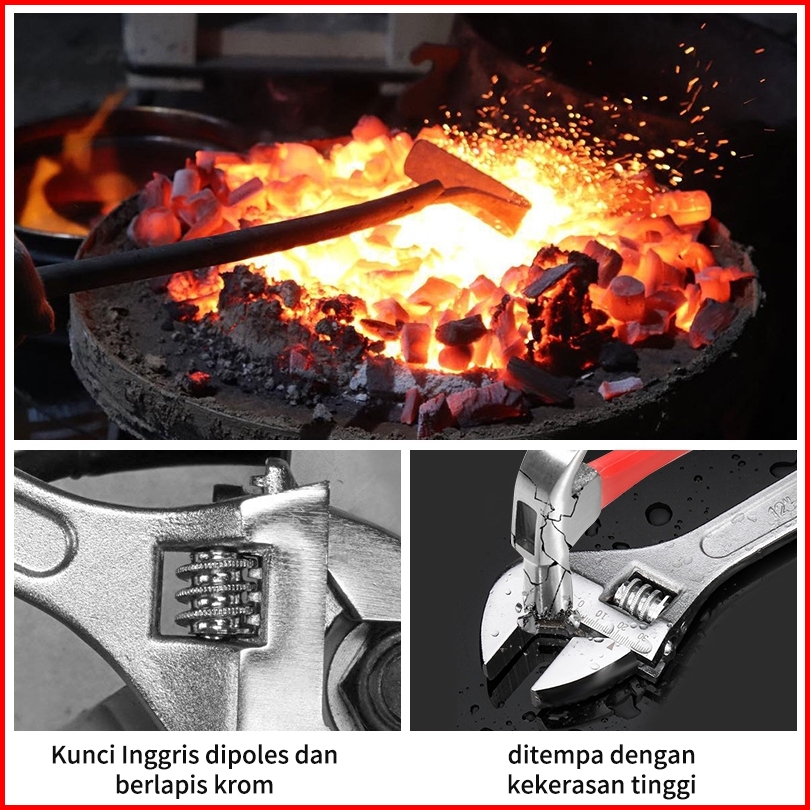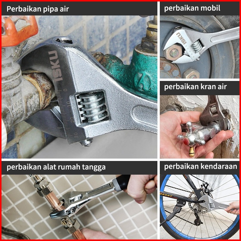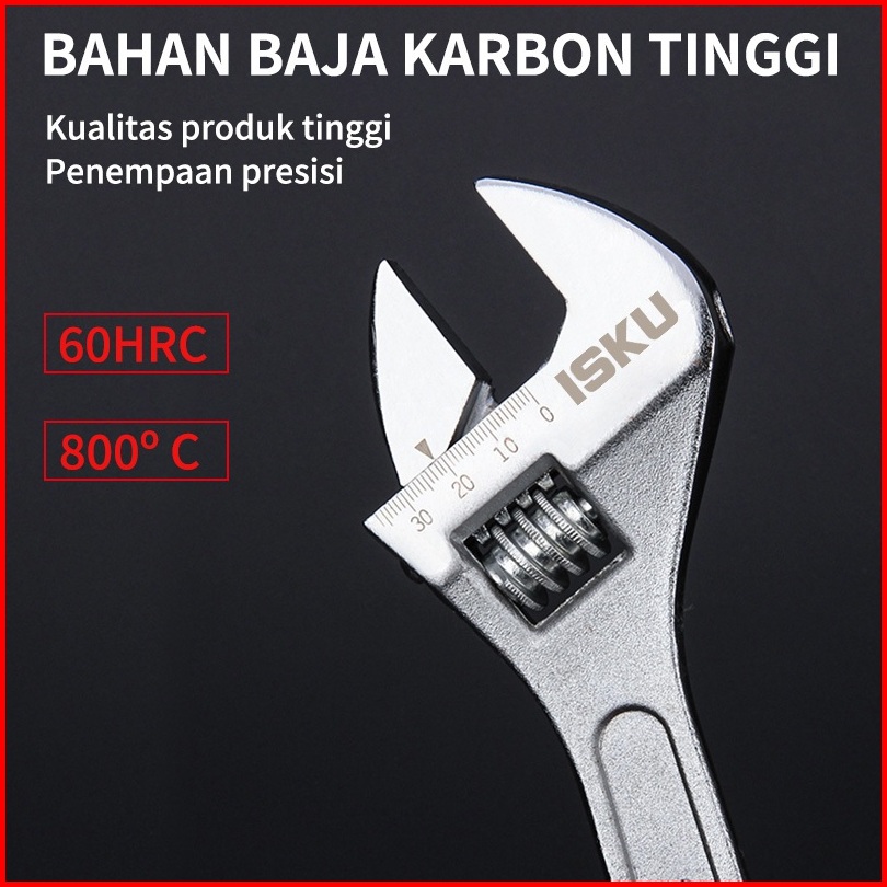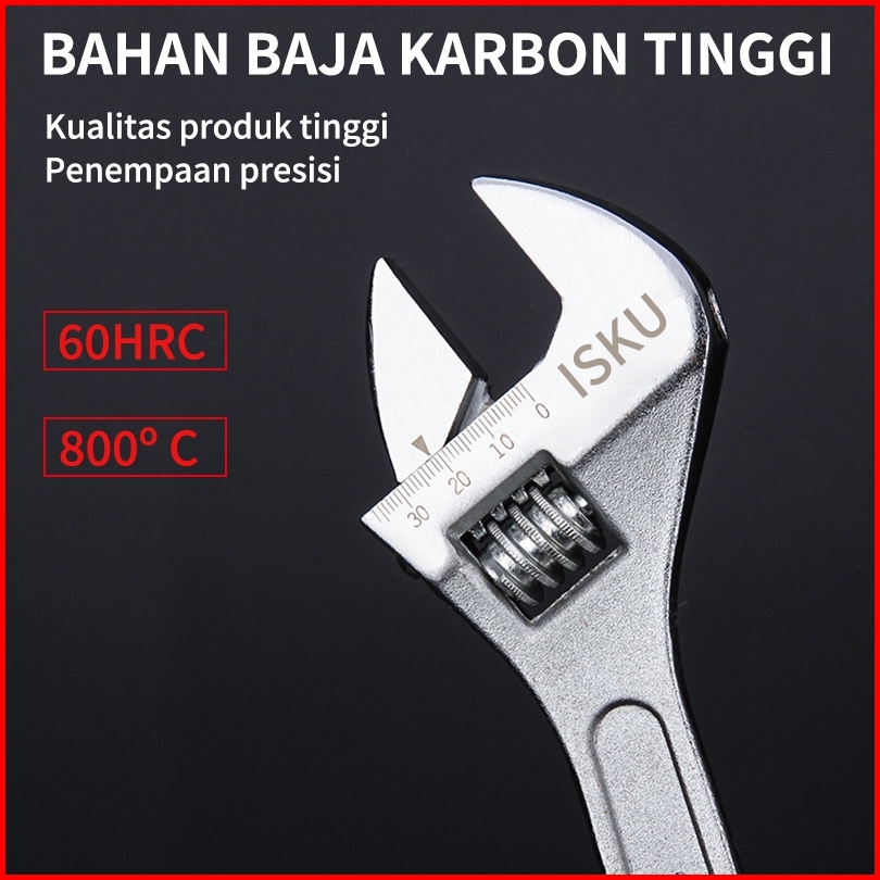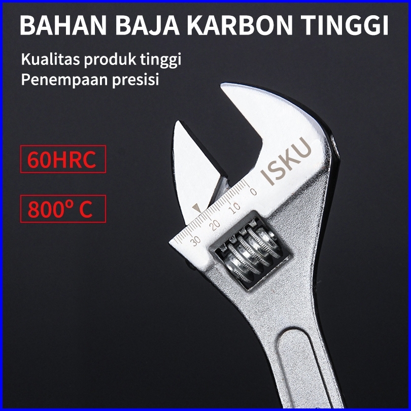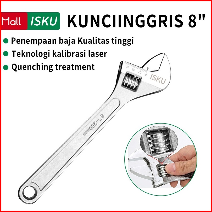 Isku Kunci Inggris 8 Inch Panjang 200mm Bahan Carbon Steel Adjustable Wrench 8 Inch