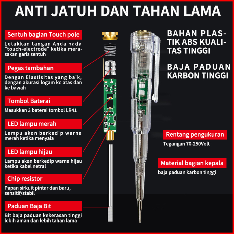 Isku Obeng Test Pencil Tester Tespen Obeng Tes With Indicator Dual Led Tespen Listrik Multifungsi