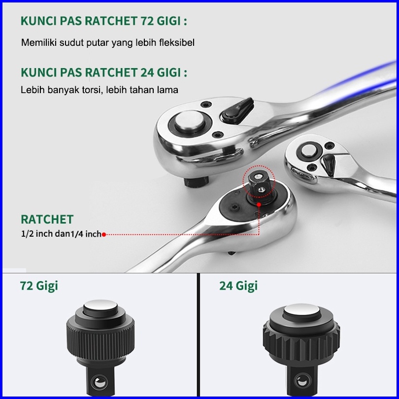 Isku Kunci Shock Set Kunci Mata Sok 53 Pcs Set Socket 1 4 Full Tool Kit Alat Perbaikan Mobil Set