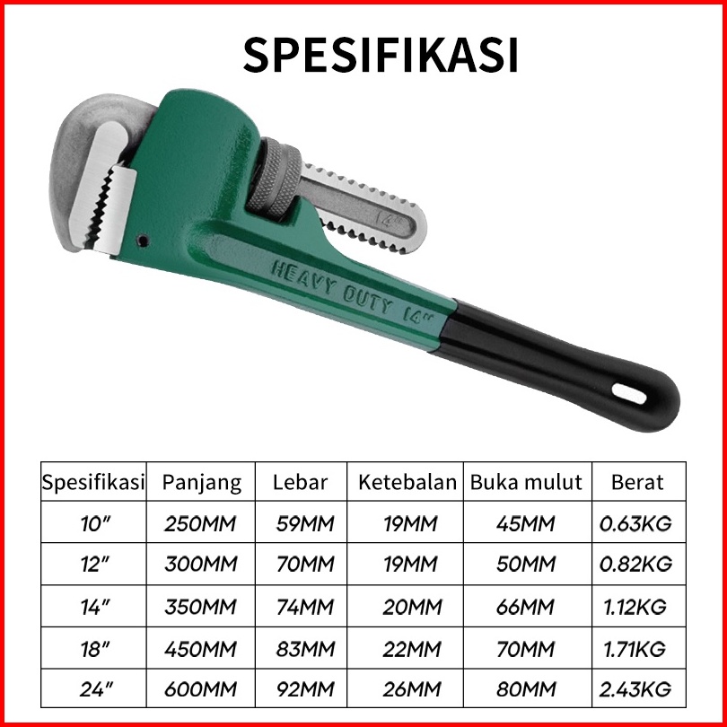 Isku Kunci Pipa Pipe Wrench Kunci Ledeng 10 12 14 18 24 Inch
