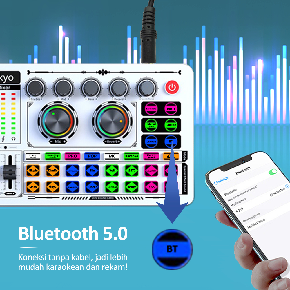 Soundcard F999+M996+HEADSET Bluetooth Compatible External Wireless Dj Mixer Pengurangan Kebisingan Untuk Streaming Langs