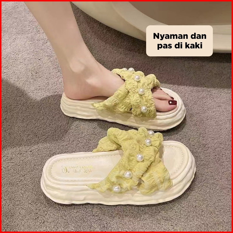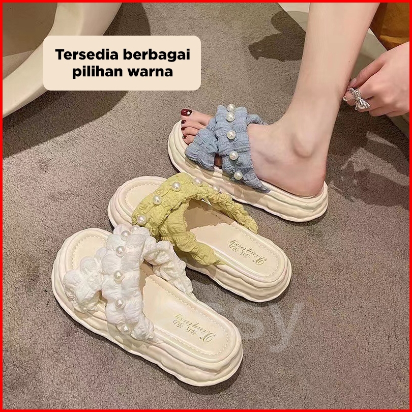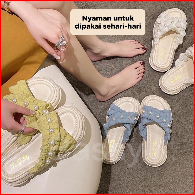 Bassy Sandal Mutiara Wanita Sandal Slip On Wanita Casual Sendal Karet Terbaru Sandal High Cewek Hsn218
