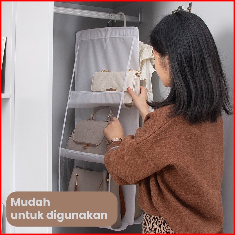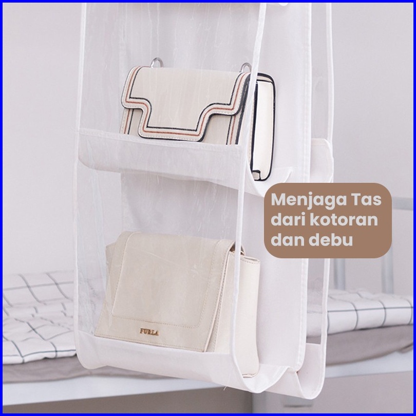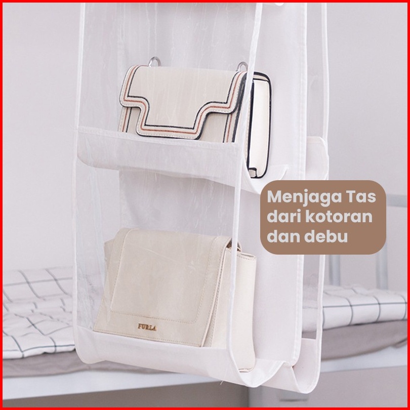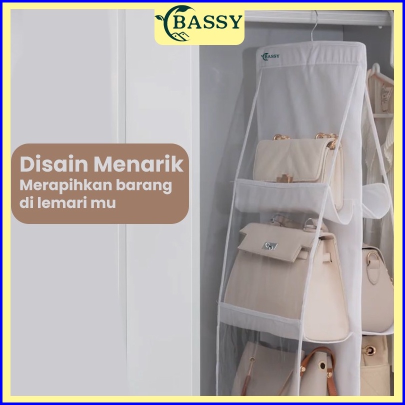 Bassy Rak Tas Gantung 6 8 Sekat Kotak Tempat Penyimpanan Tas Anti Debu Gantungan Bag Hdk301