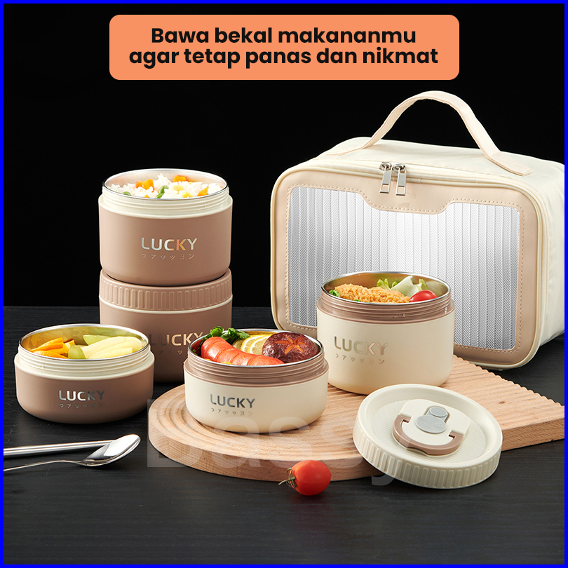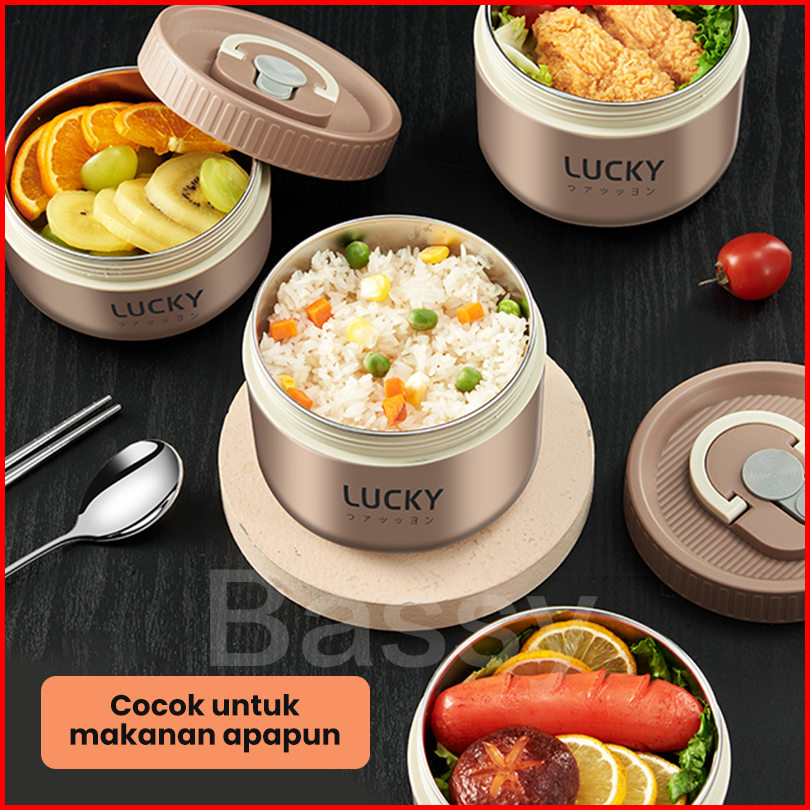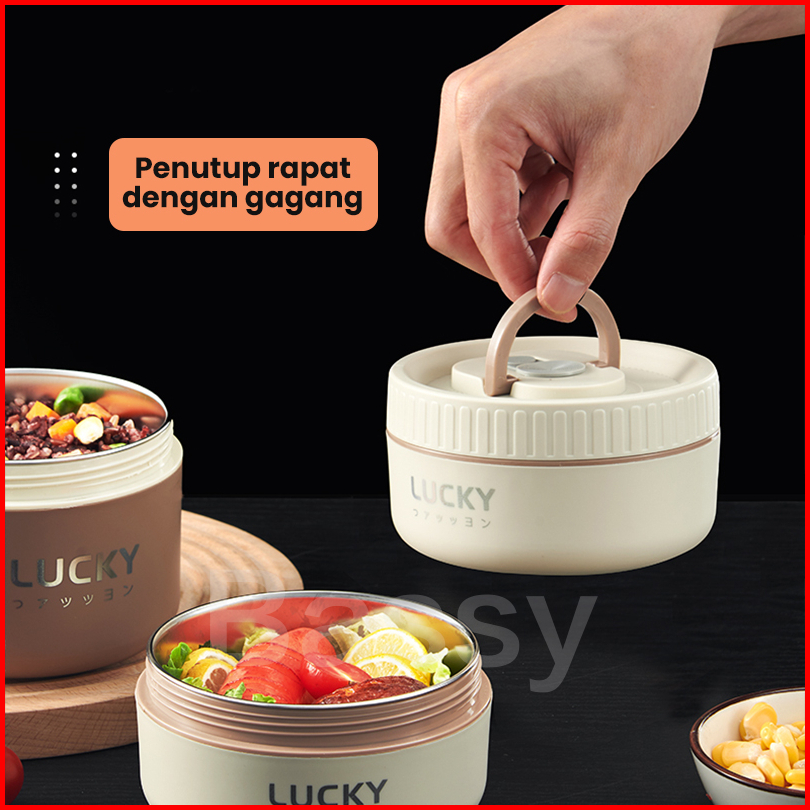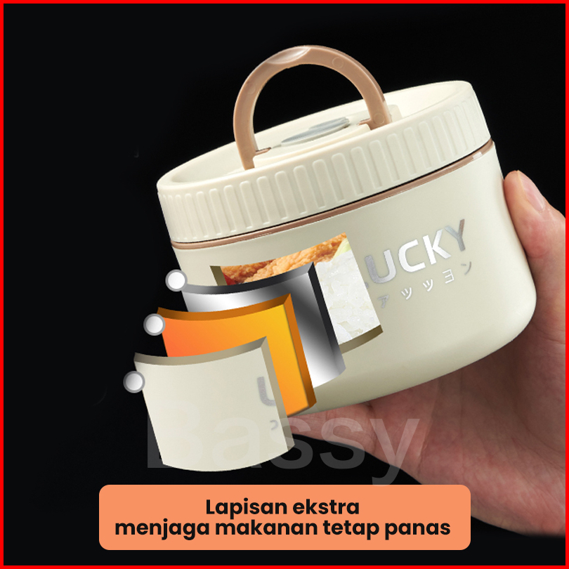 Bassy Tempat Bekal Makan Tahan Panas Thermal Lunchbox Stainless Kotak Bekal Sup Termos Mini Hmb106